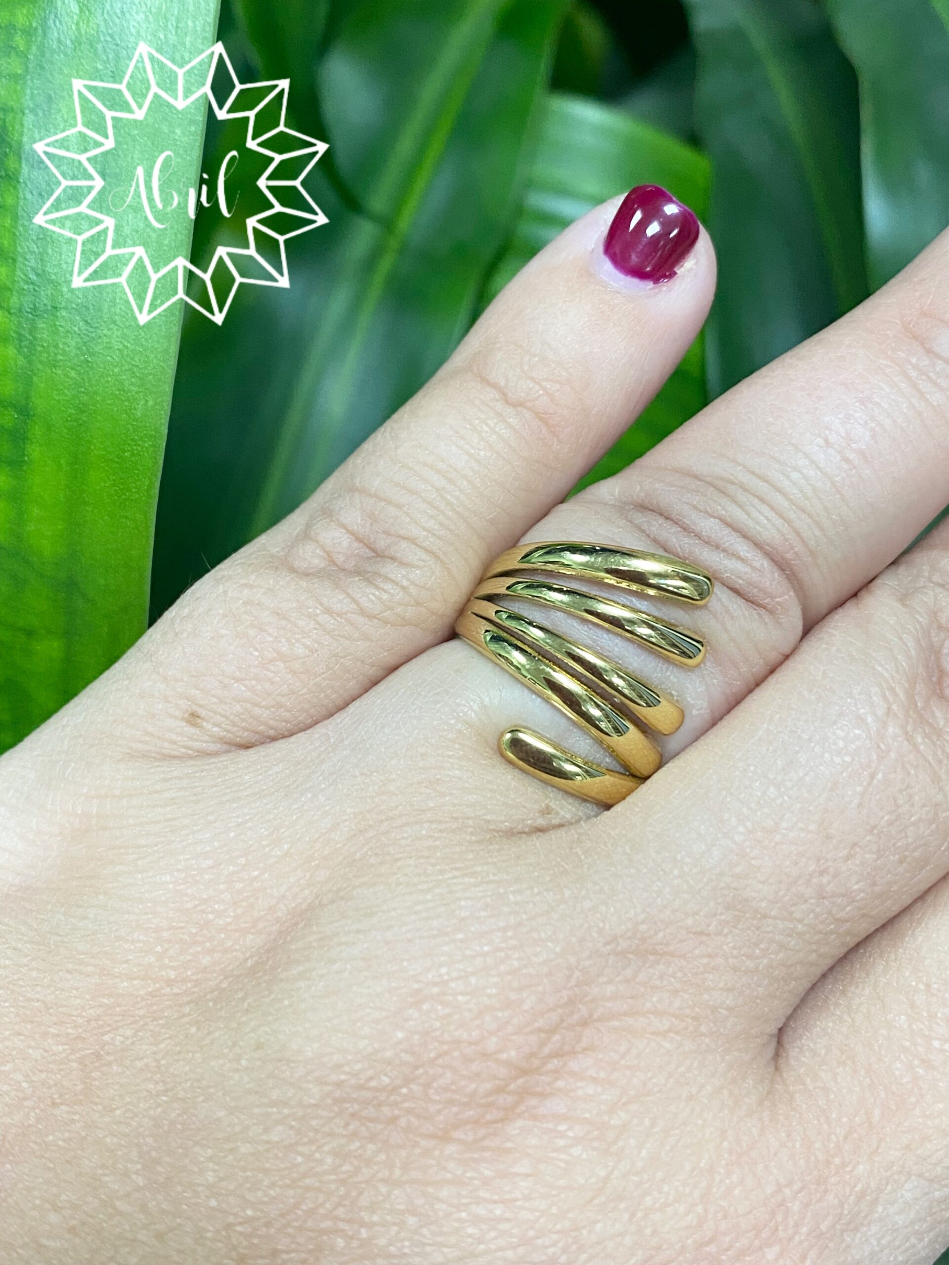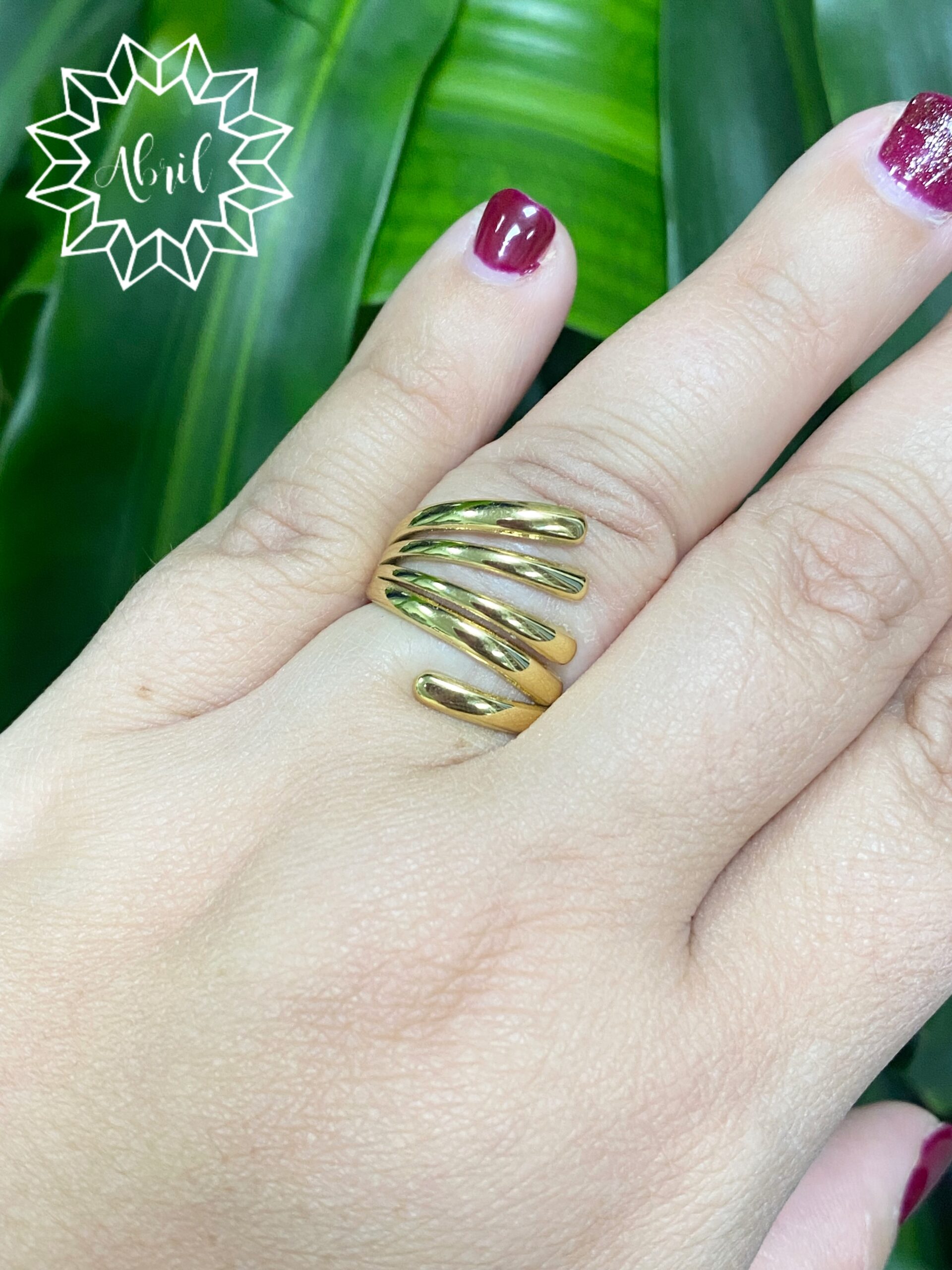 Anillo ajustable de acero dorado.