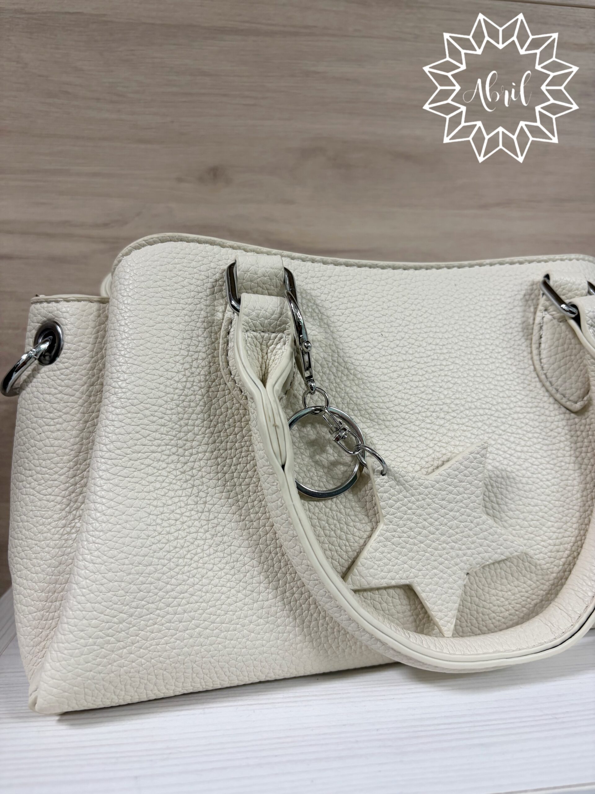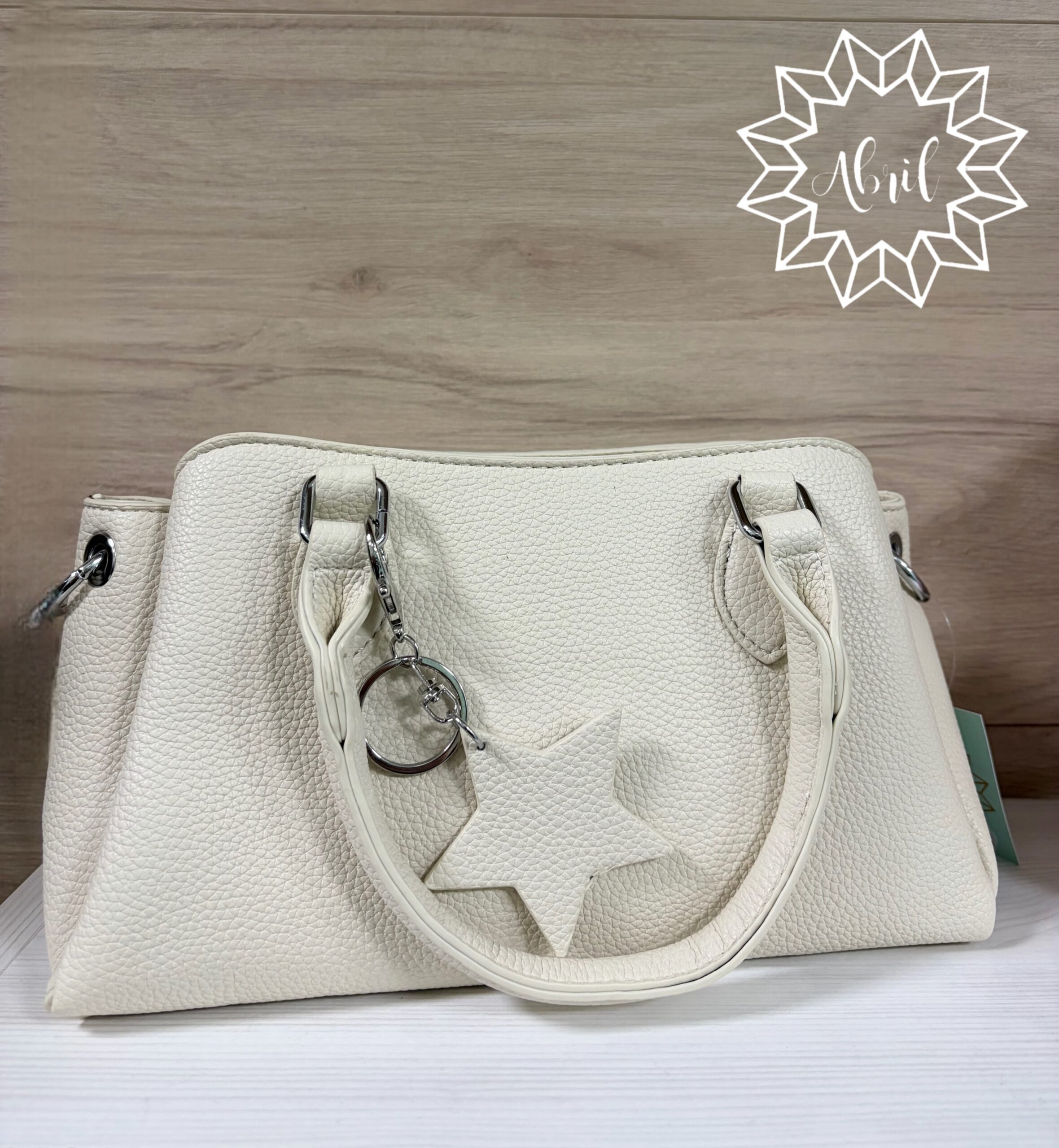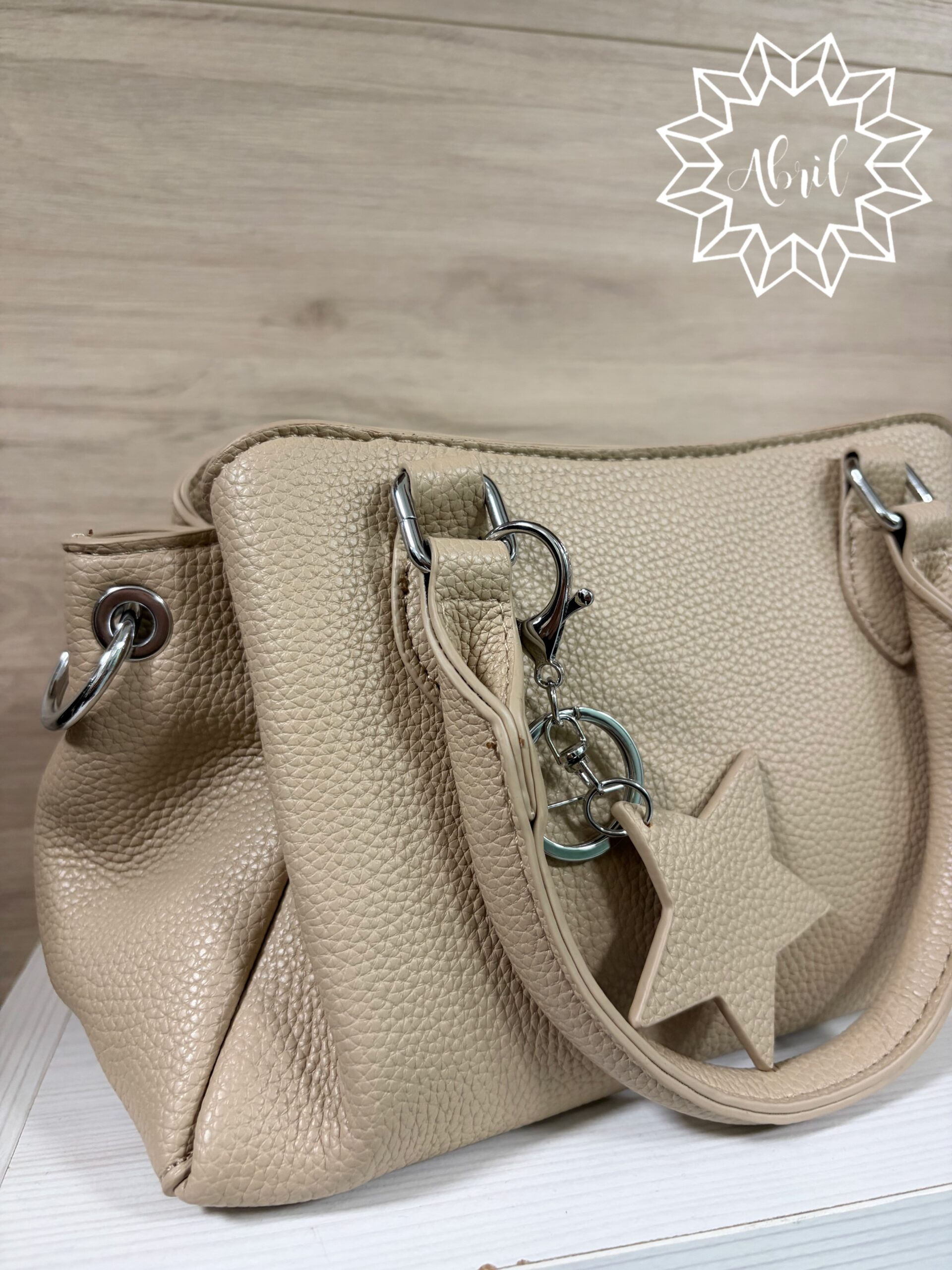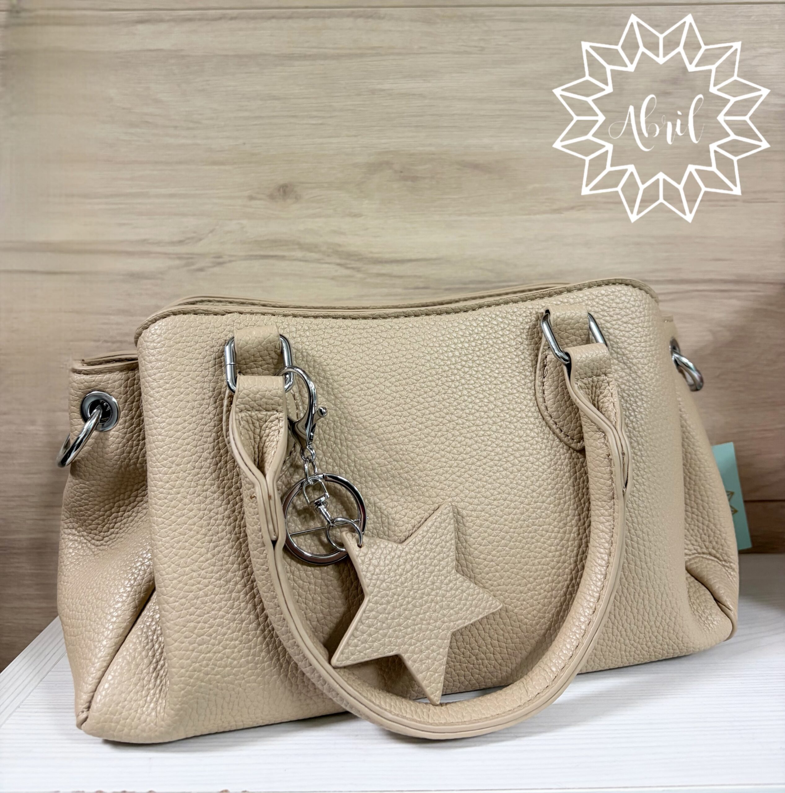 Bolsos de material, de tamaño mediano, con asas cortas y larga para que lo lleves como más te guste.