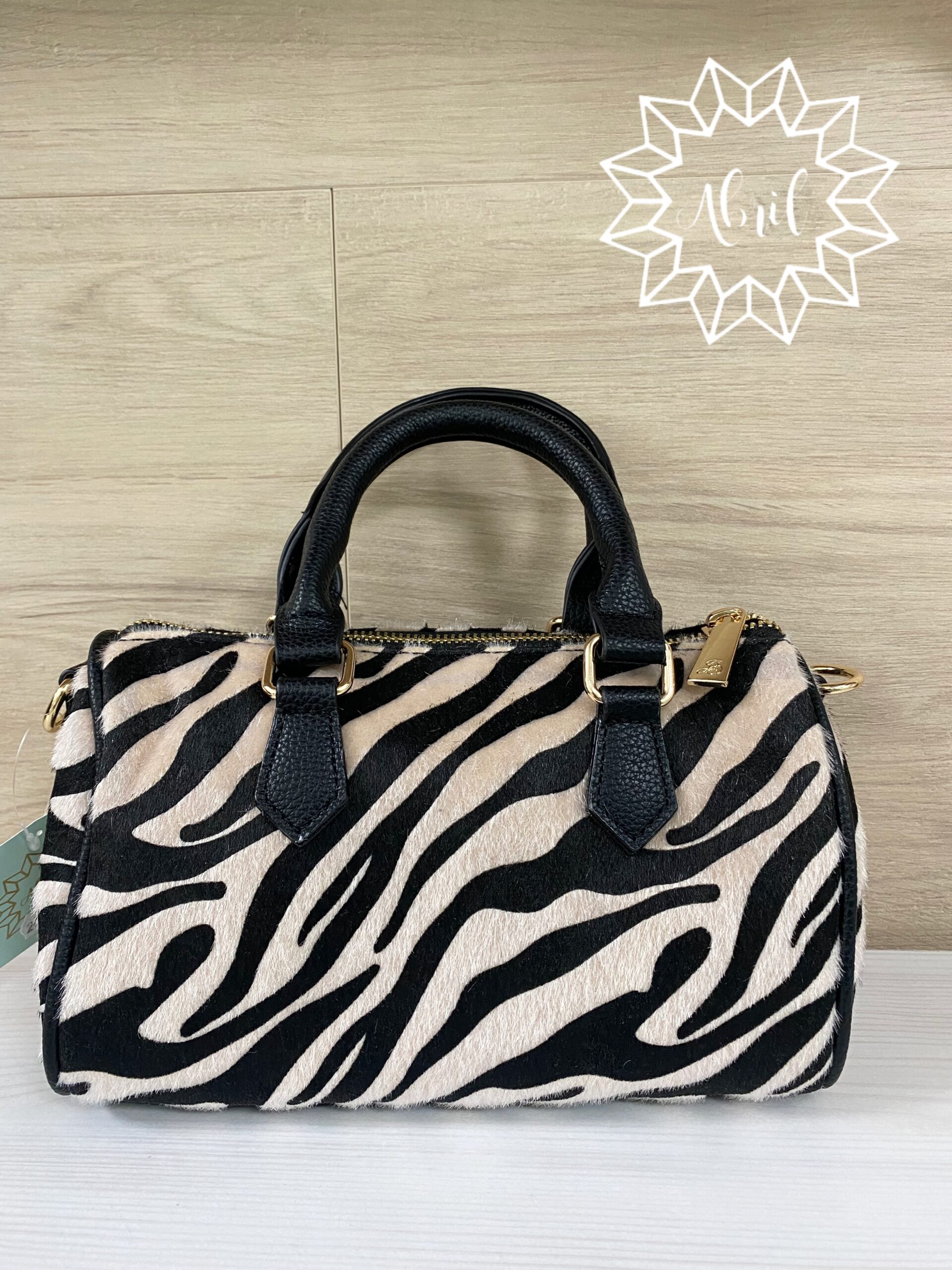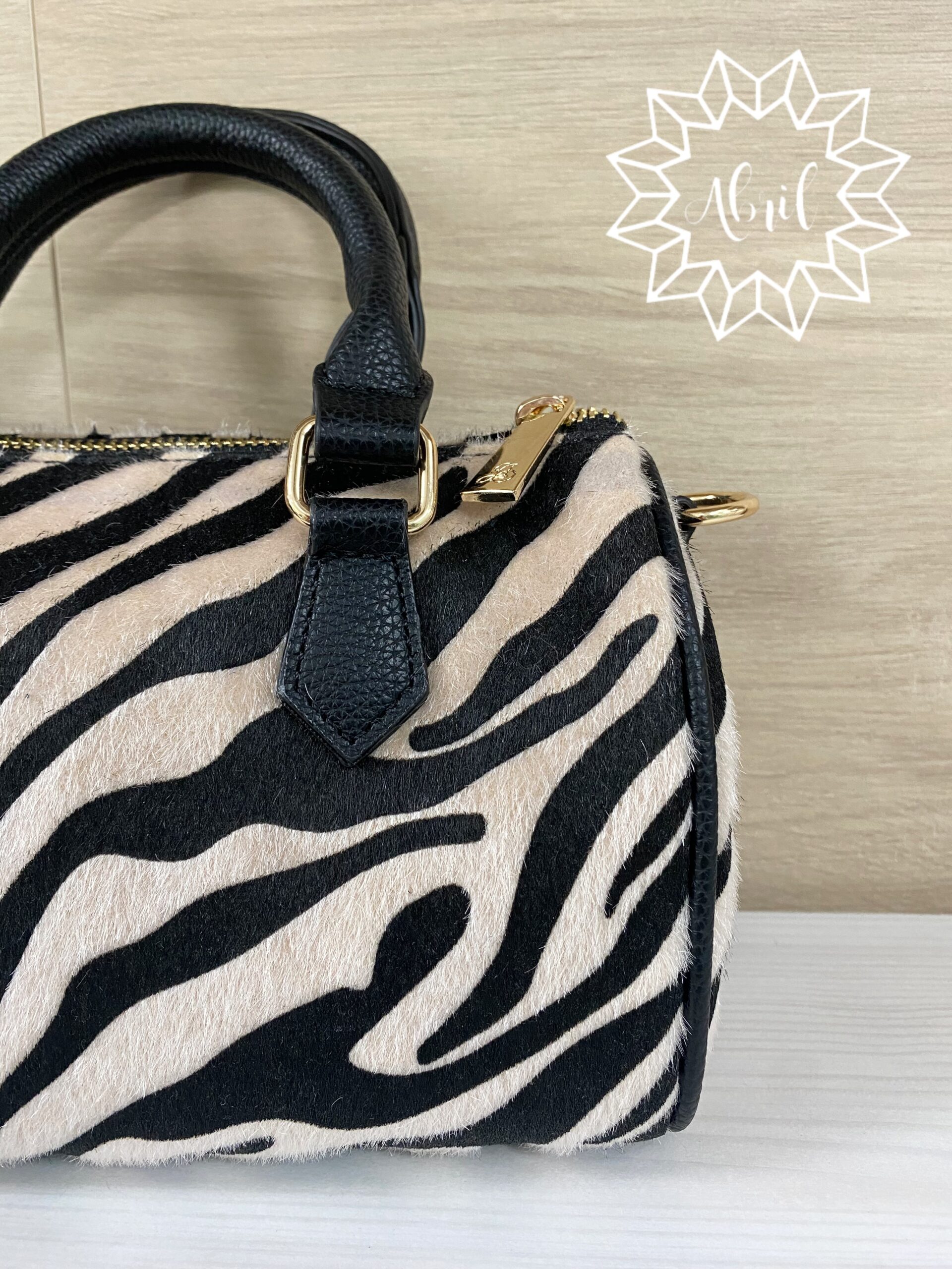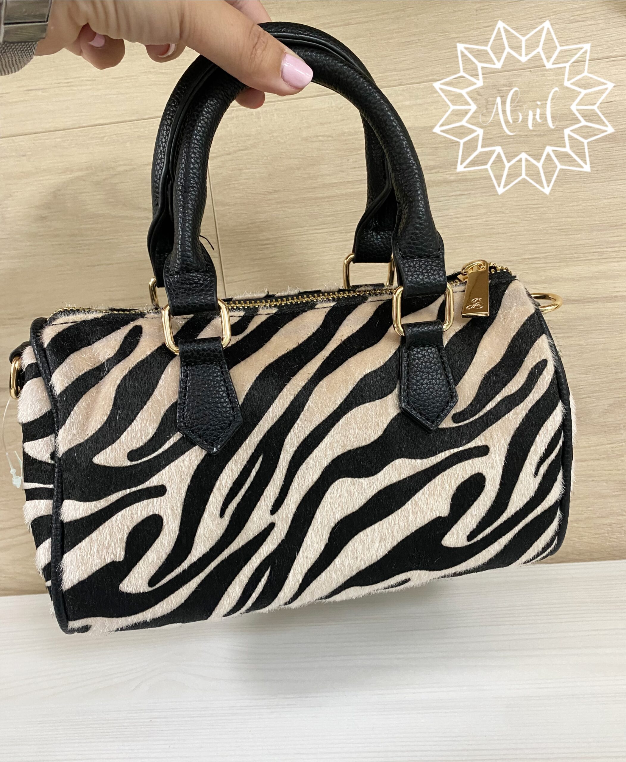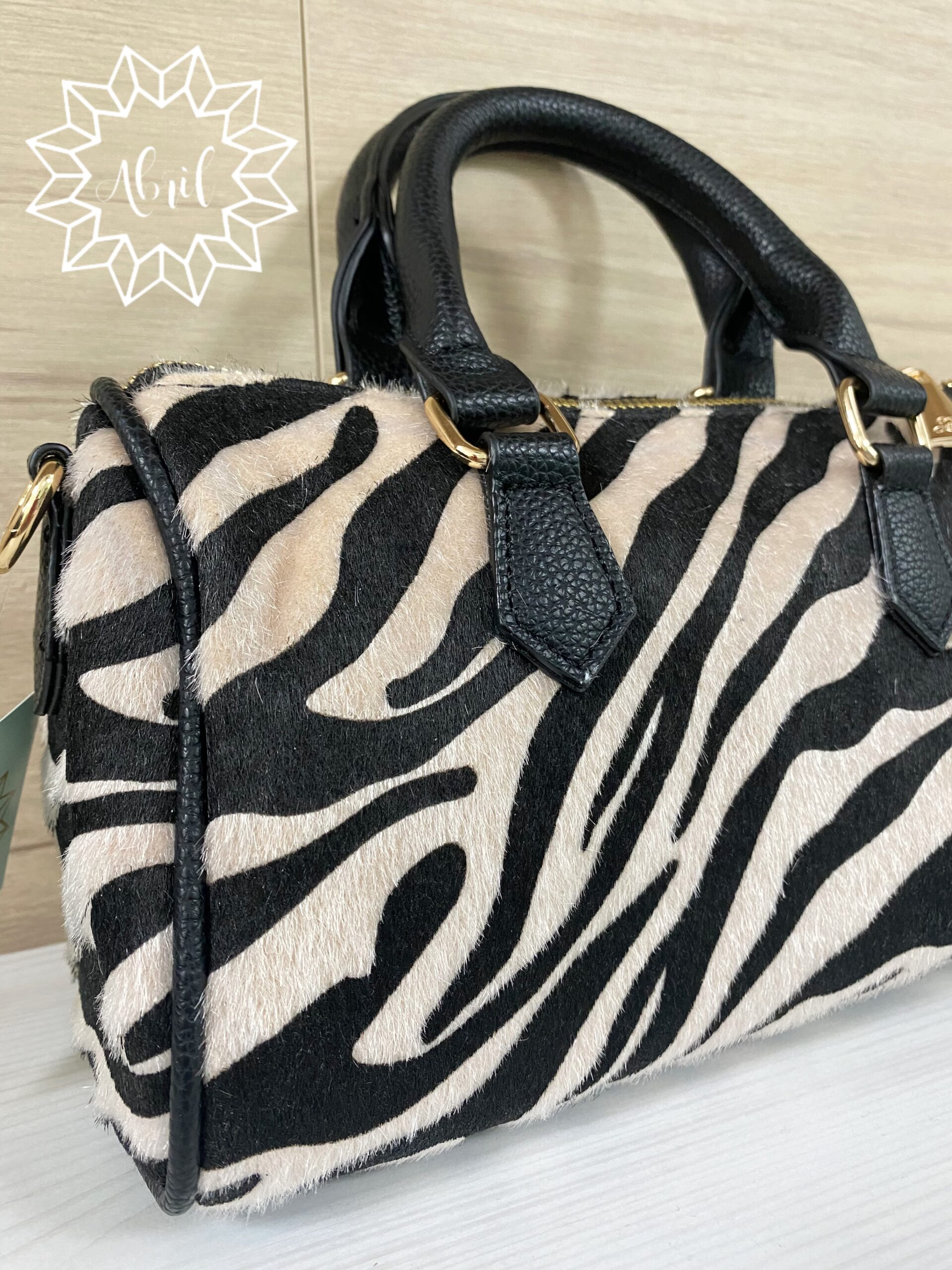 Bolso de tamaño pequeño de estampado animal print de cebra  y de pelito.