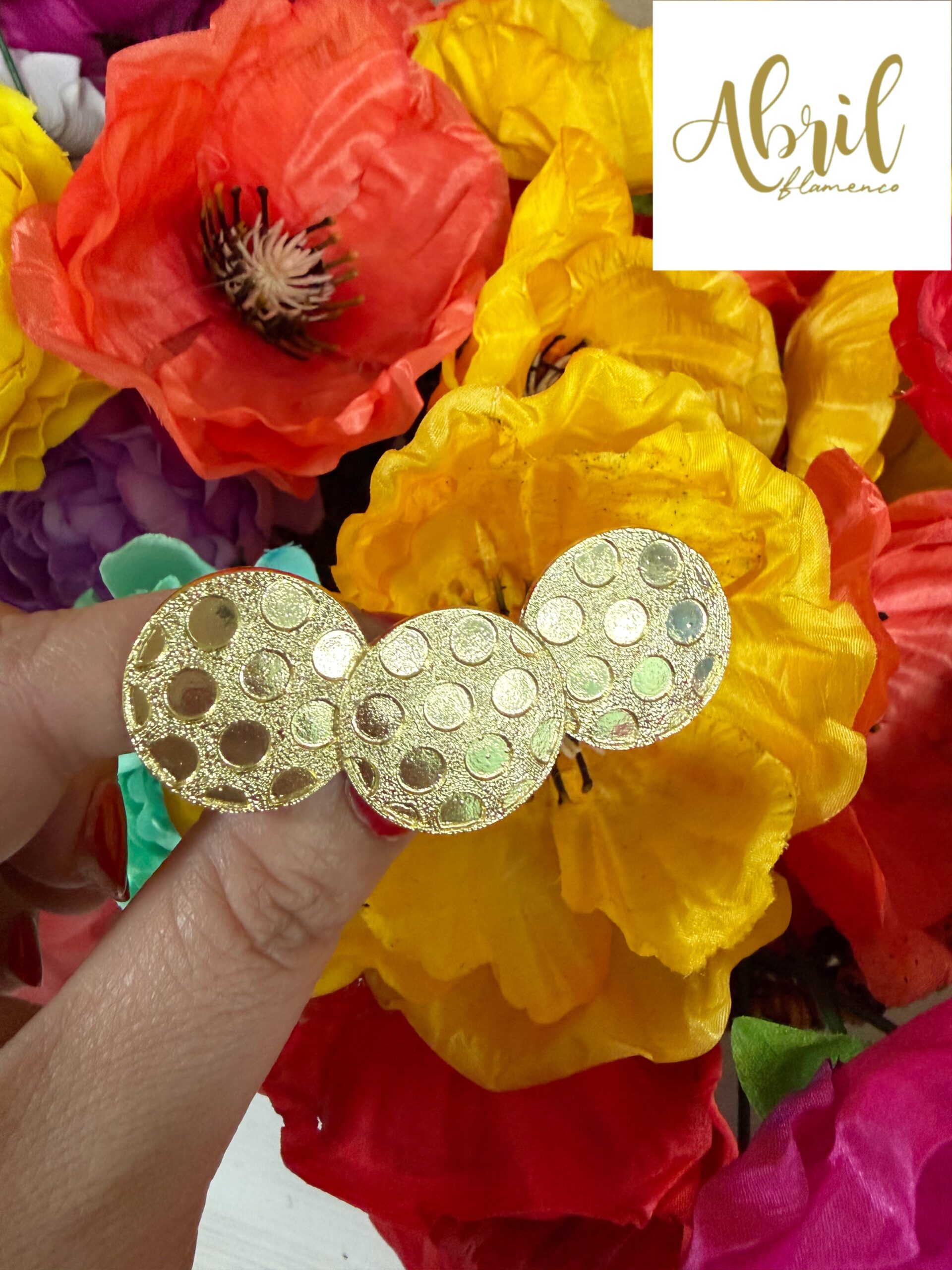 Broche dorado, lunares al tono.