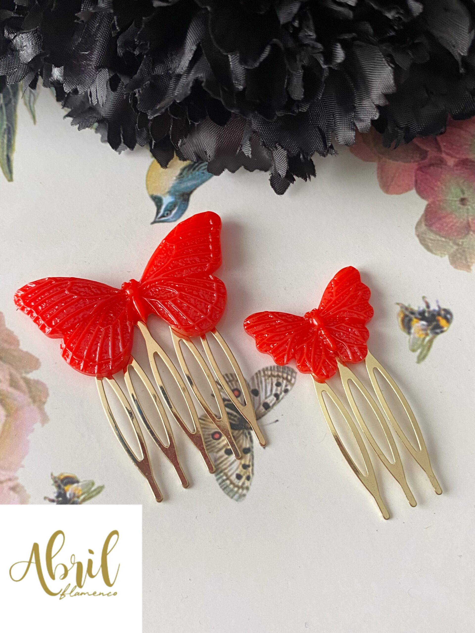 Conjunto peinas mariposa roja