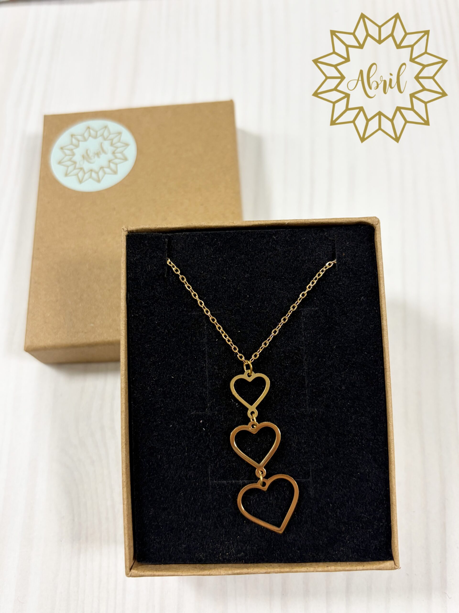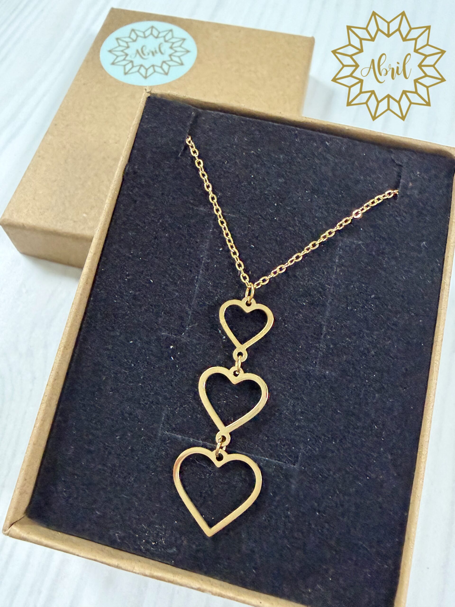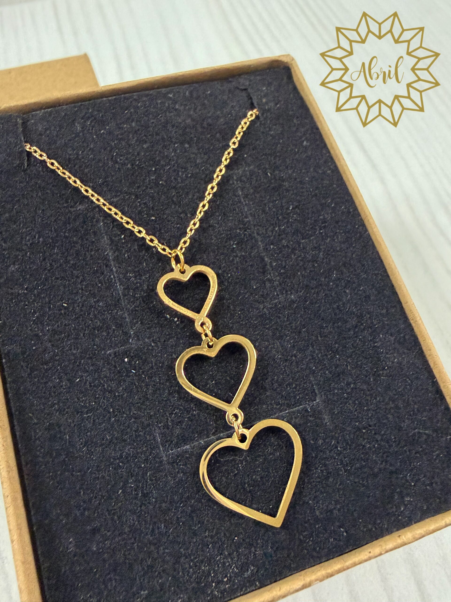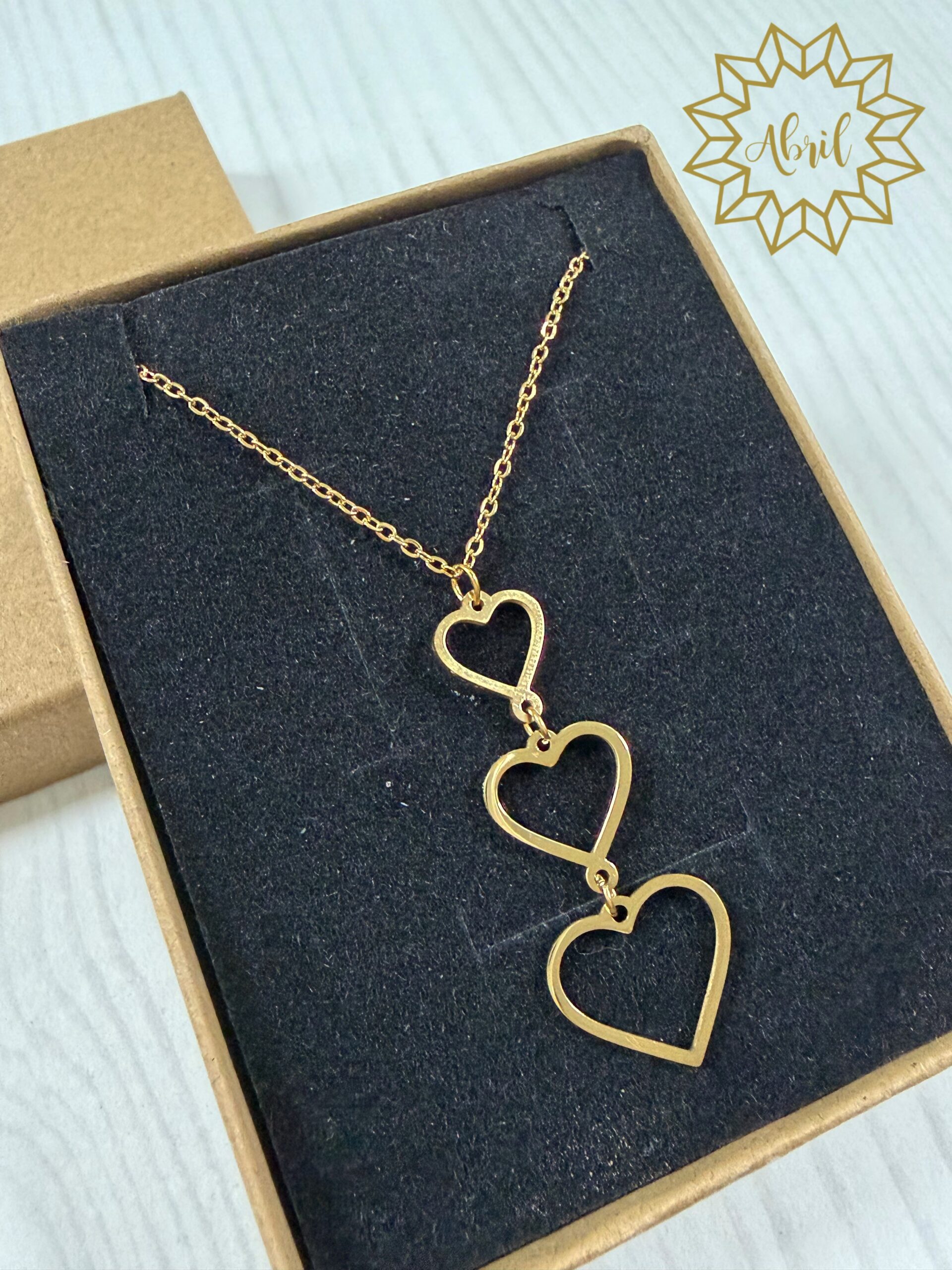 Gargantilla 3 corazones en dorados, es de acero y ajustable.