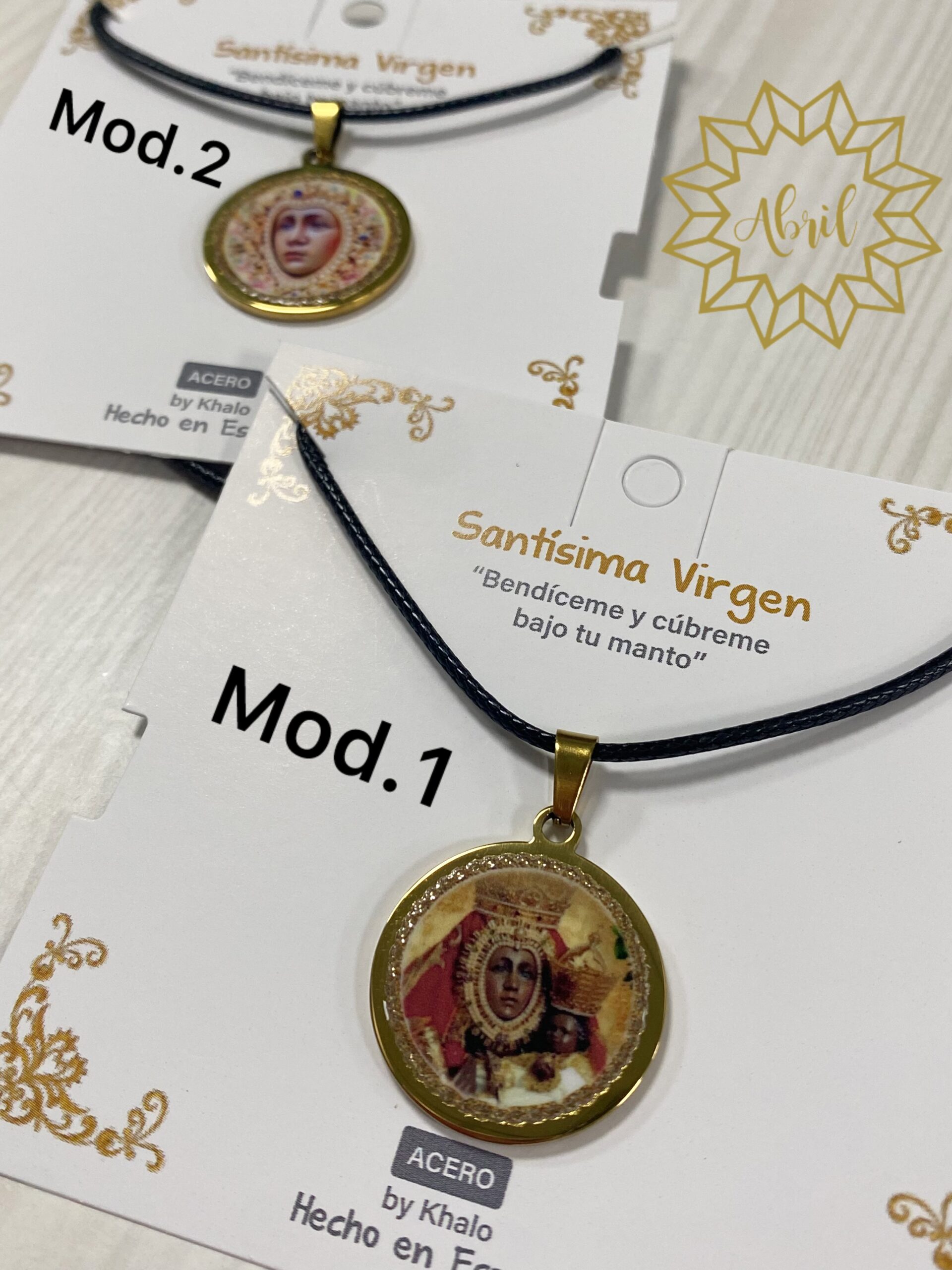 Gargantilla de caucho con medalla de la Virgen de la Cabeza (Acero)