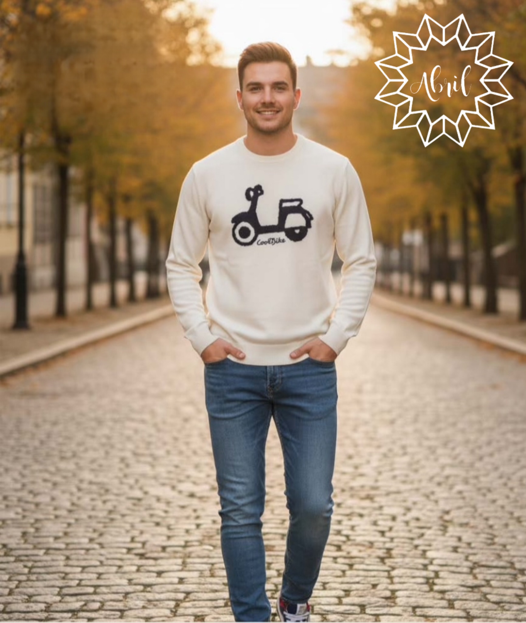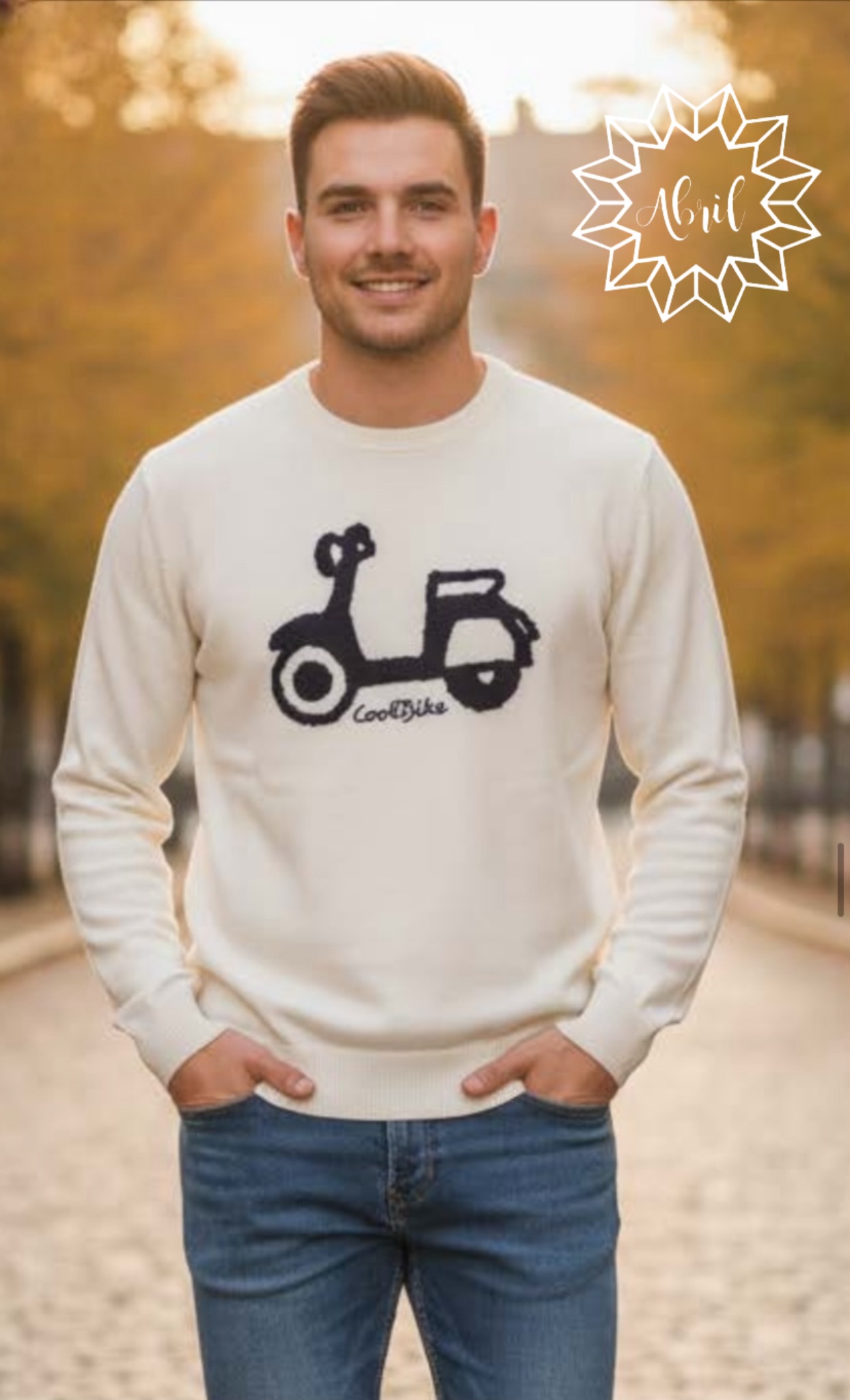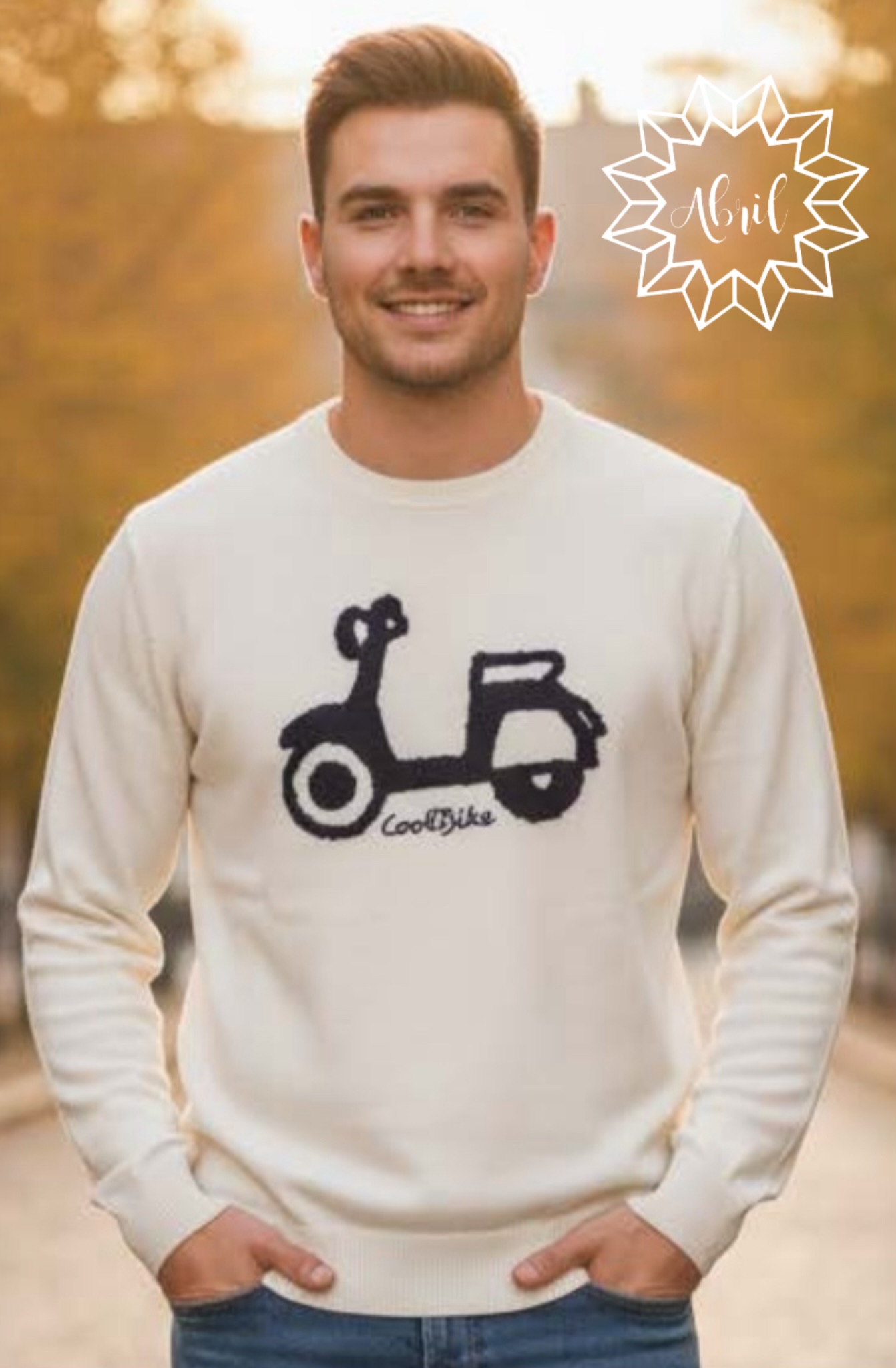 Jersey de la marca Coolbike en color crudo con moto central en borreguito.