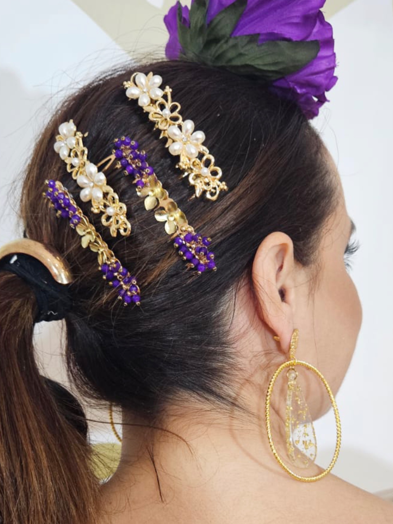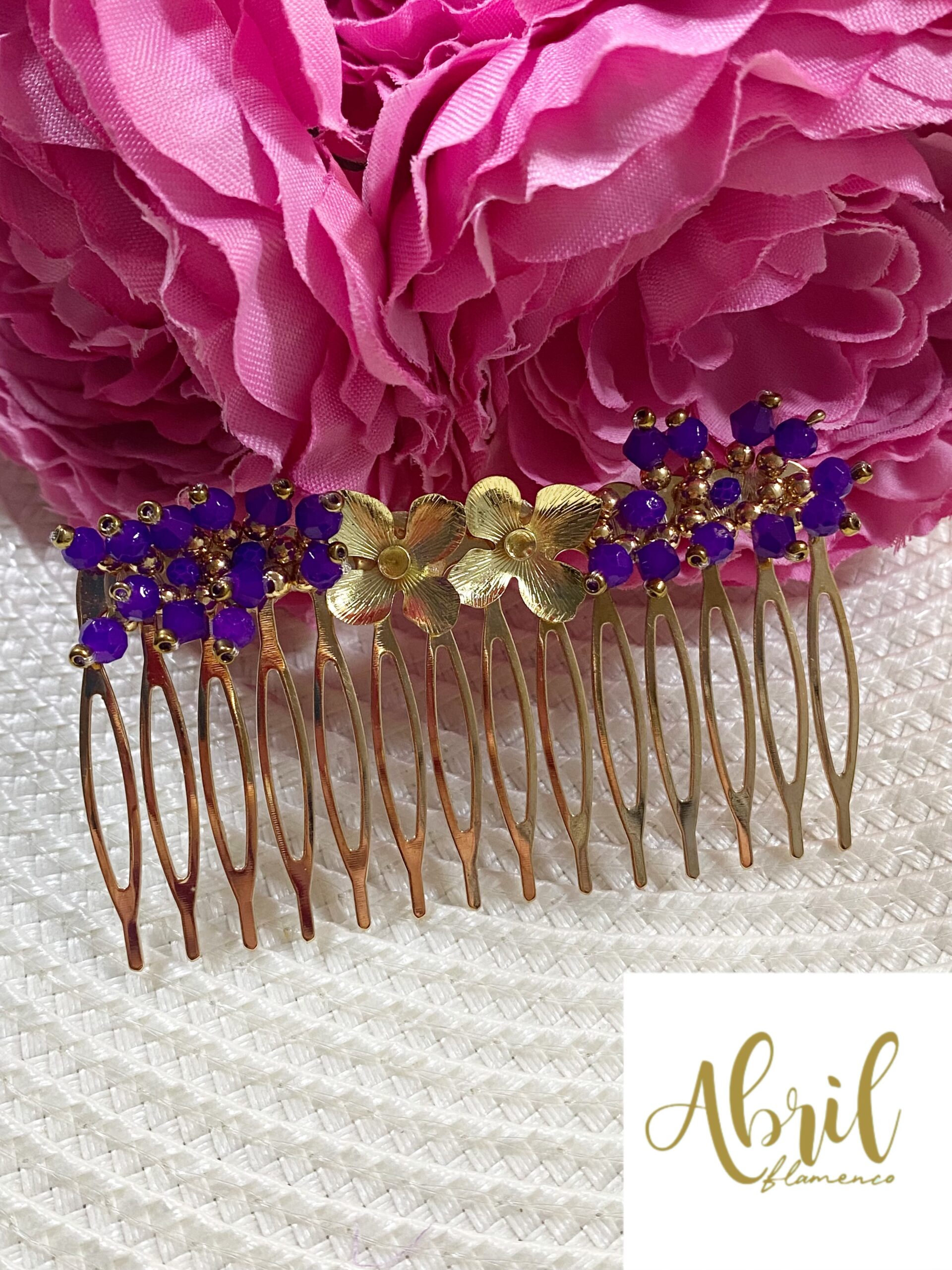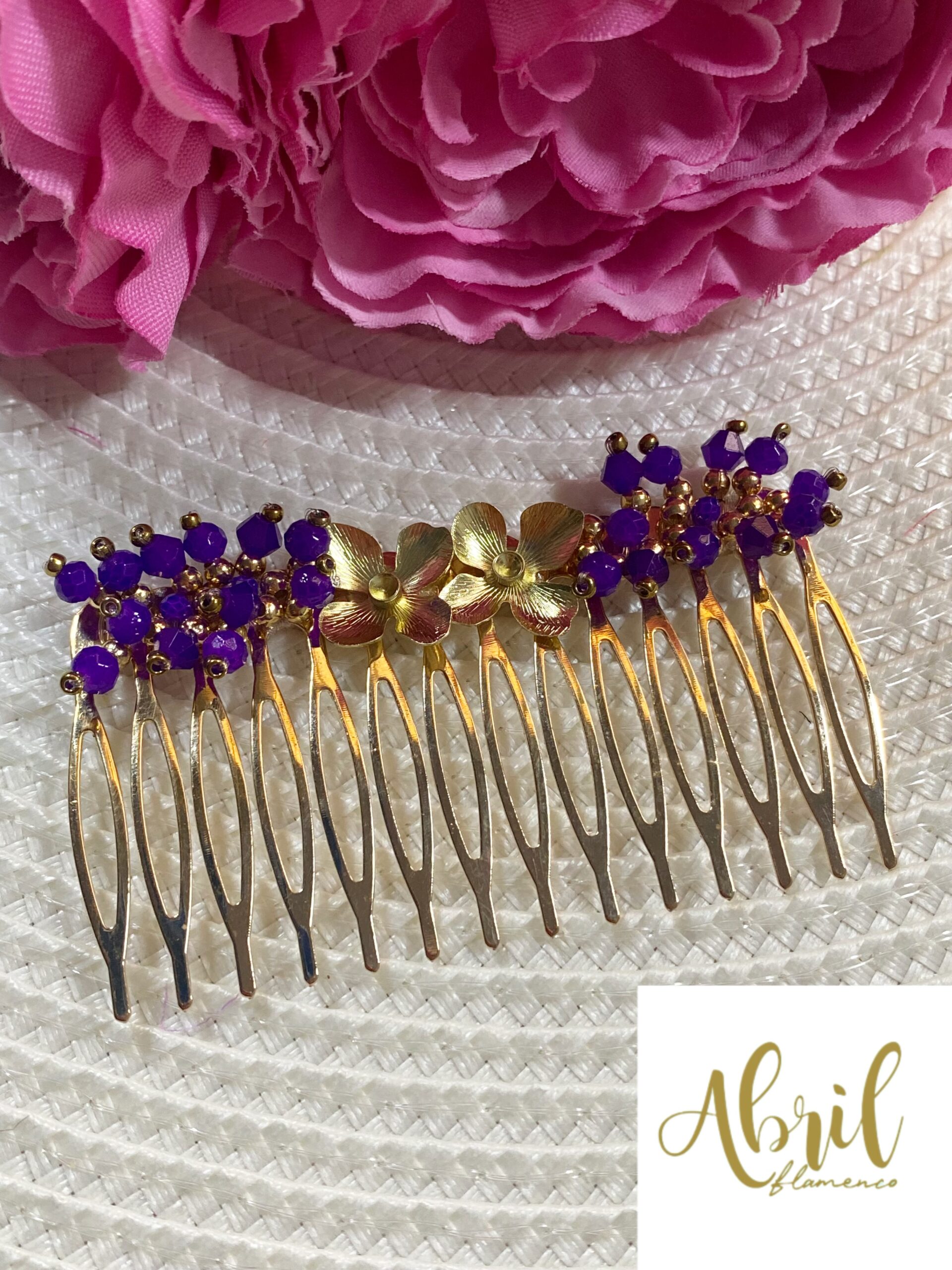 Peina flor dorada y morado