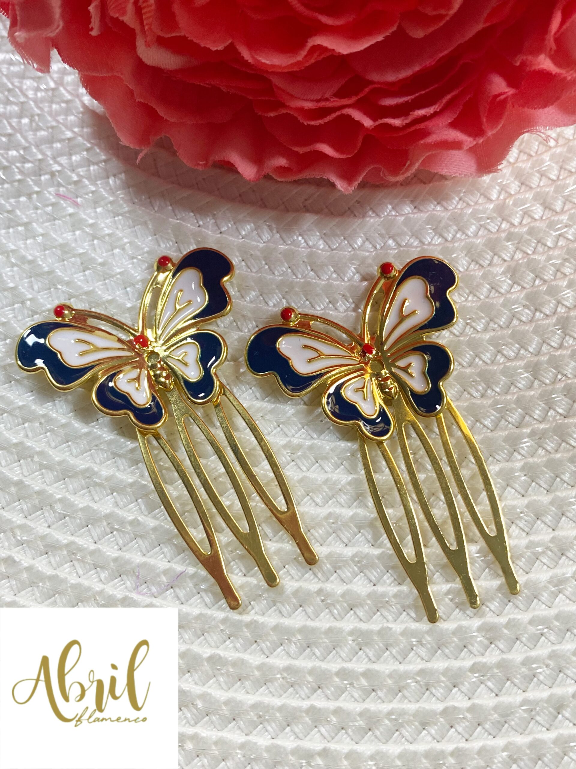 Peina mariposa bicolor marino y blanco.