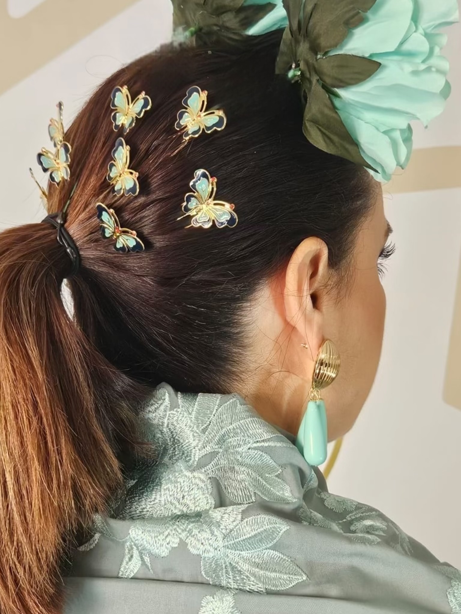 Sé el primero en valorar “Peina mariposa bicolor verde agua”
