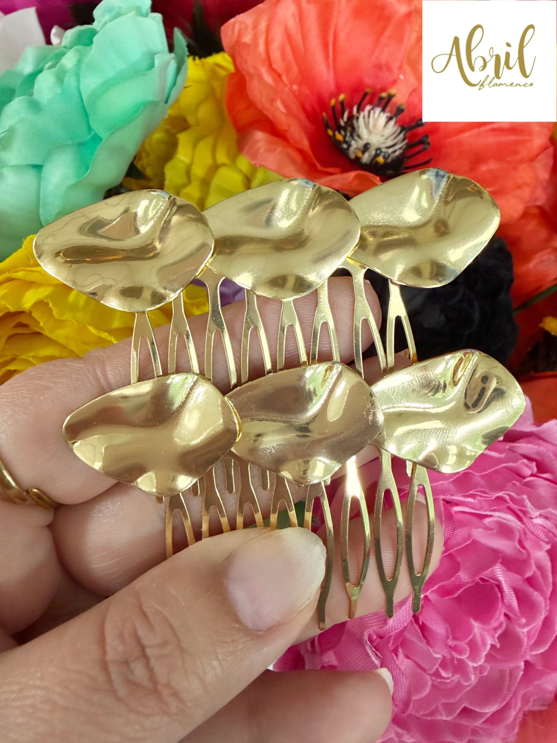 Peina flamenca alargada, dorada y haciendo agua.