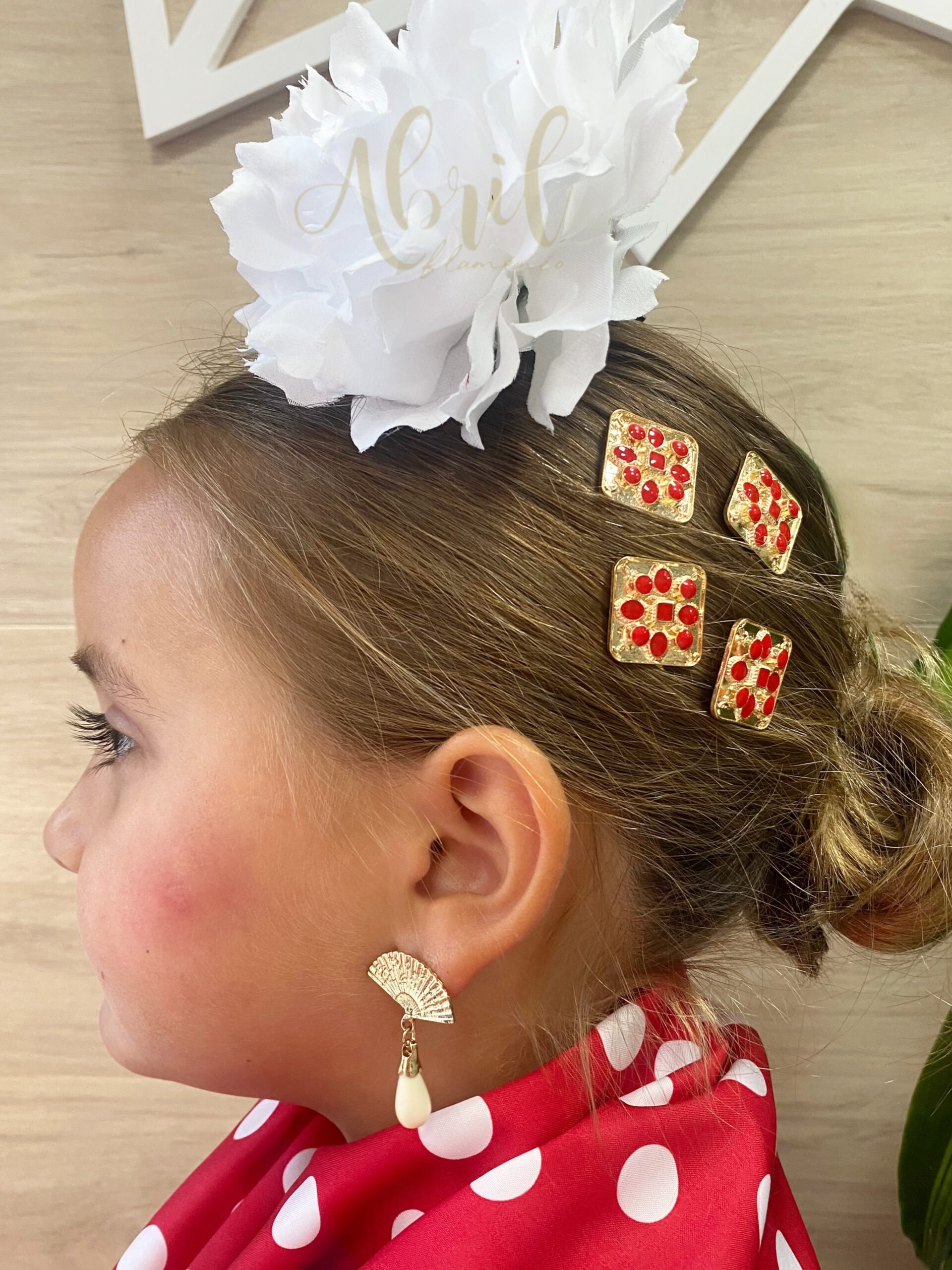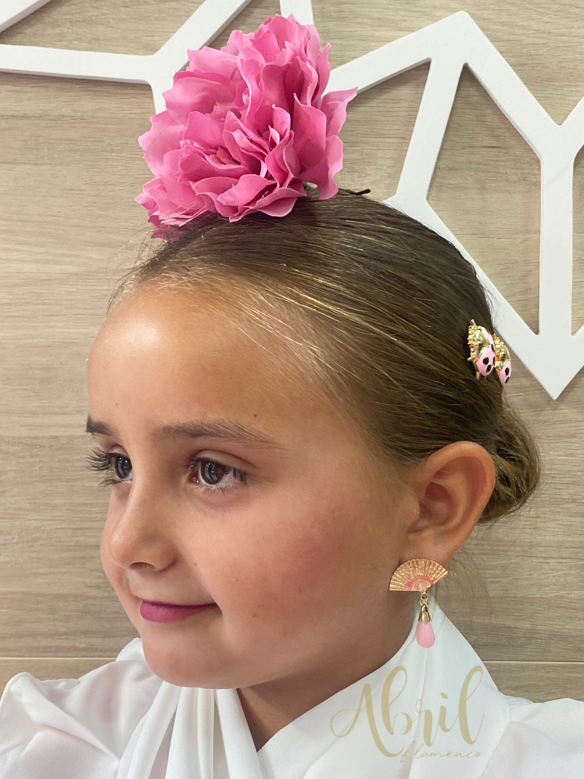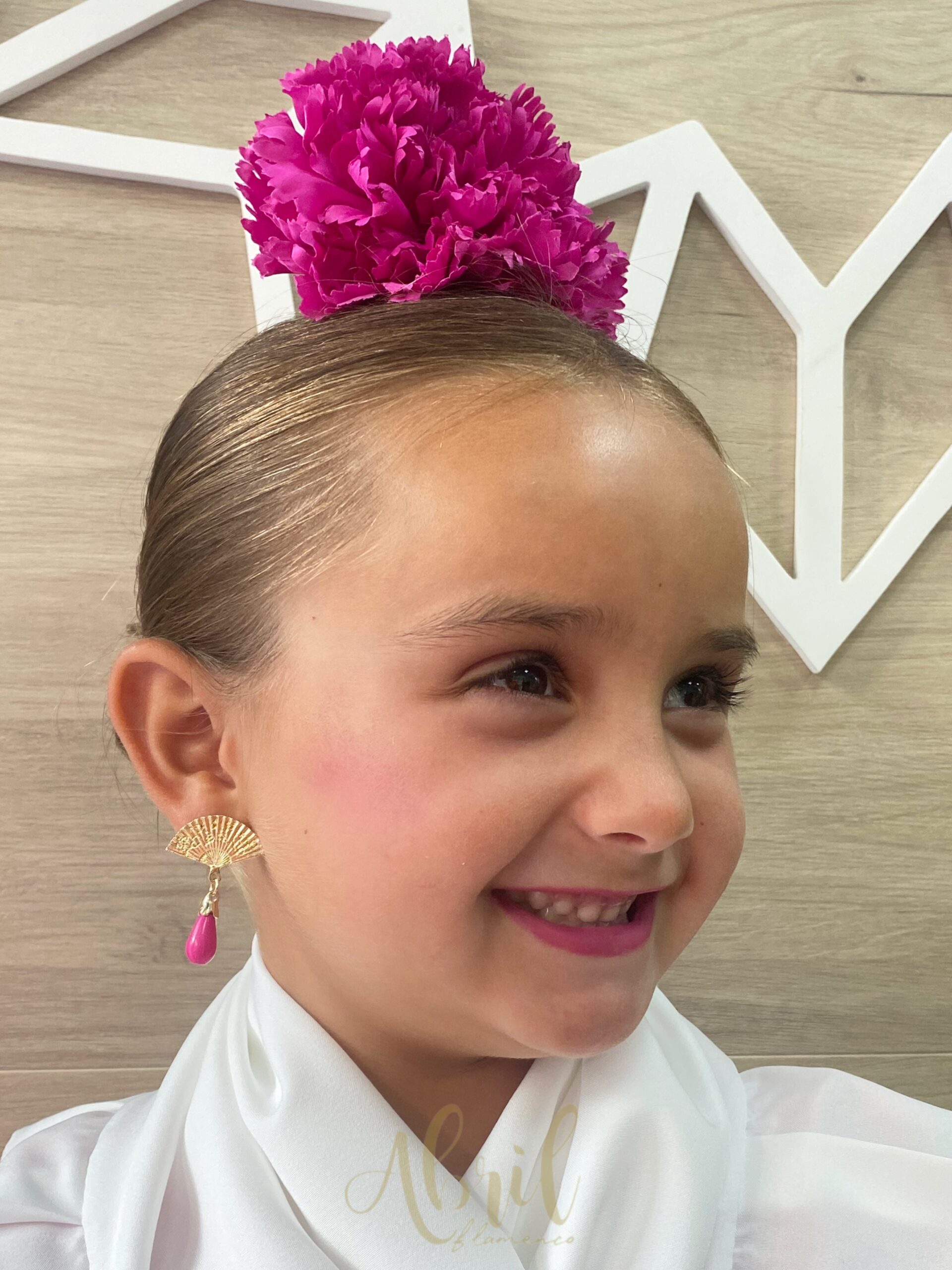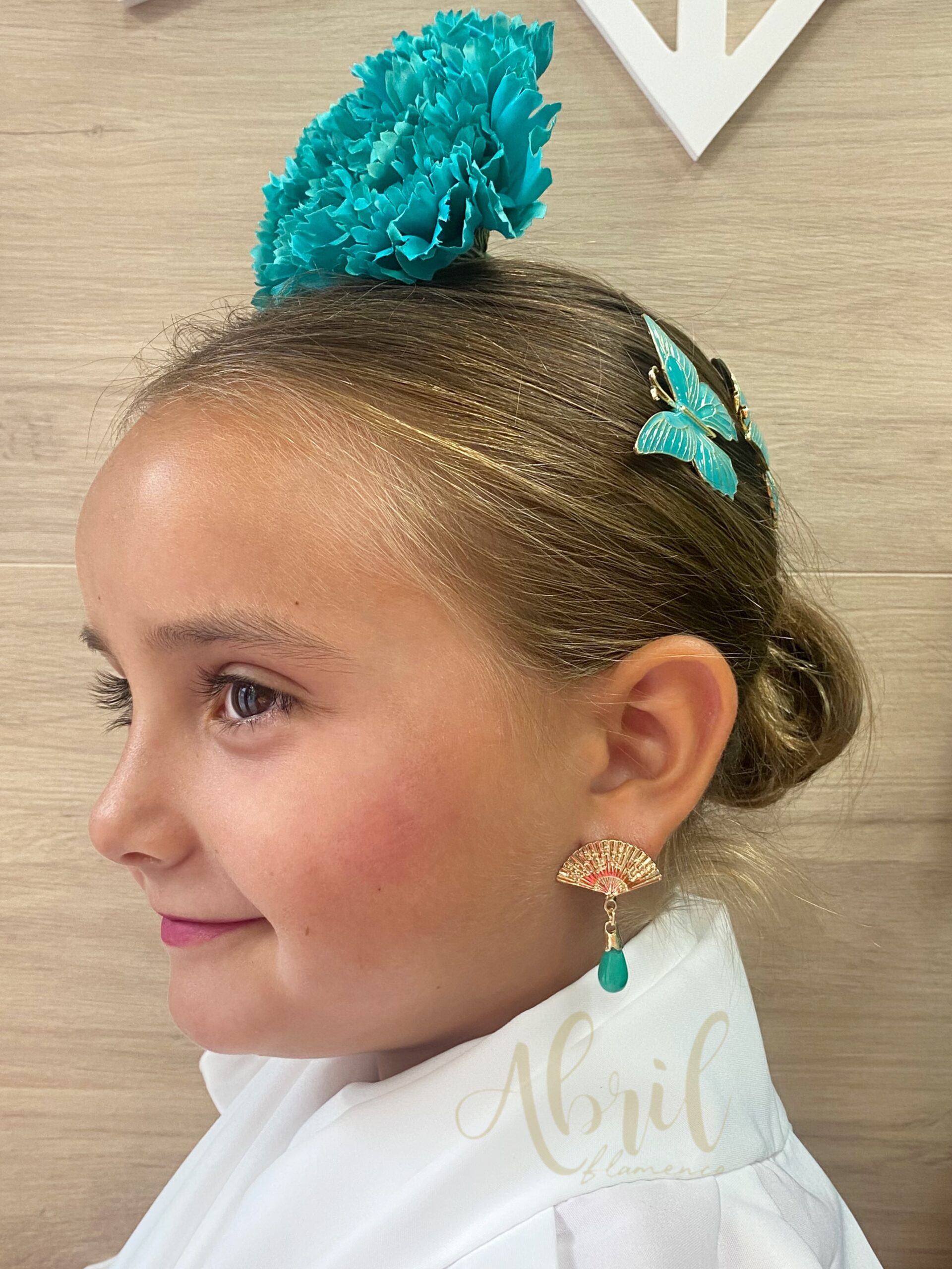 Pendientes infantiles de abanico dorado con pequeña lágrima en color.
