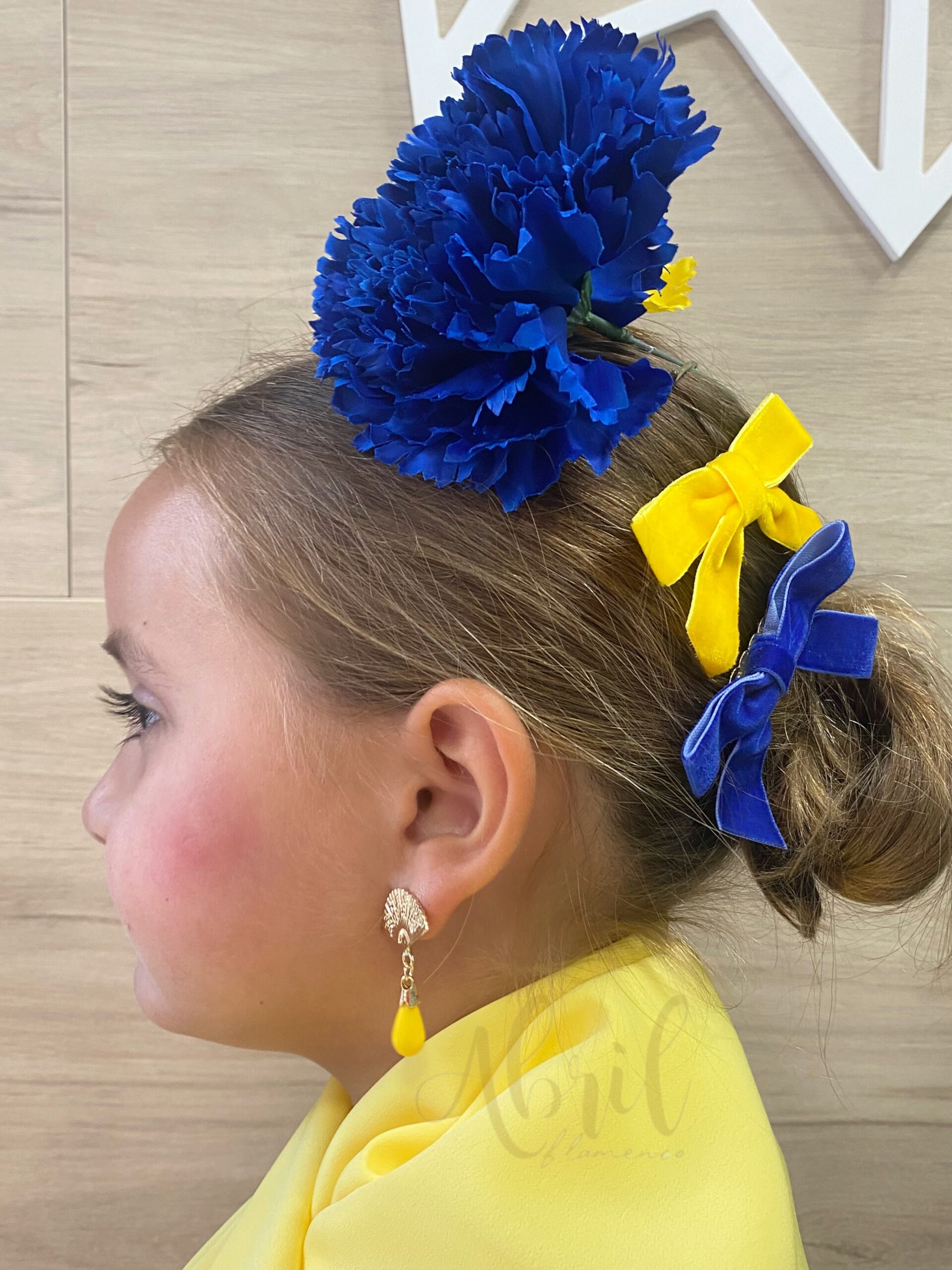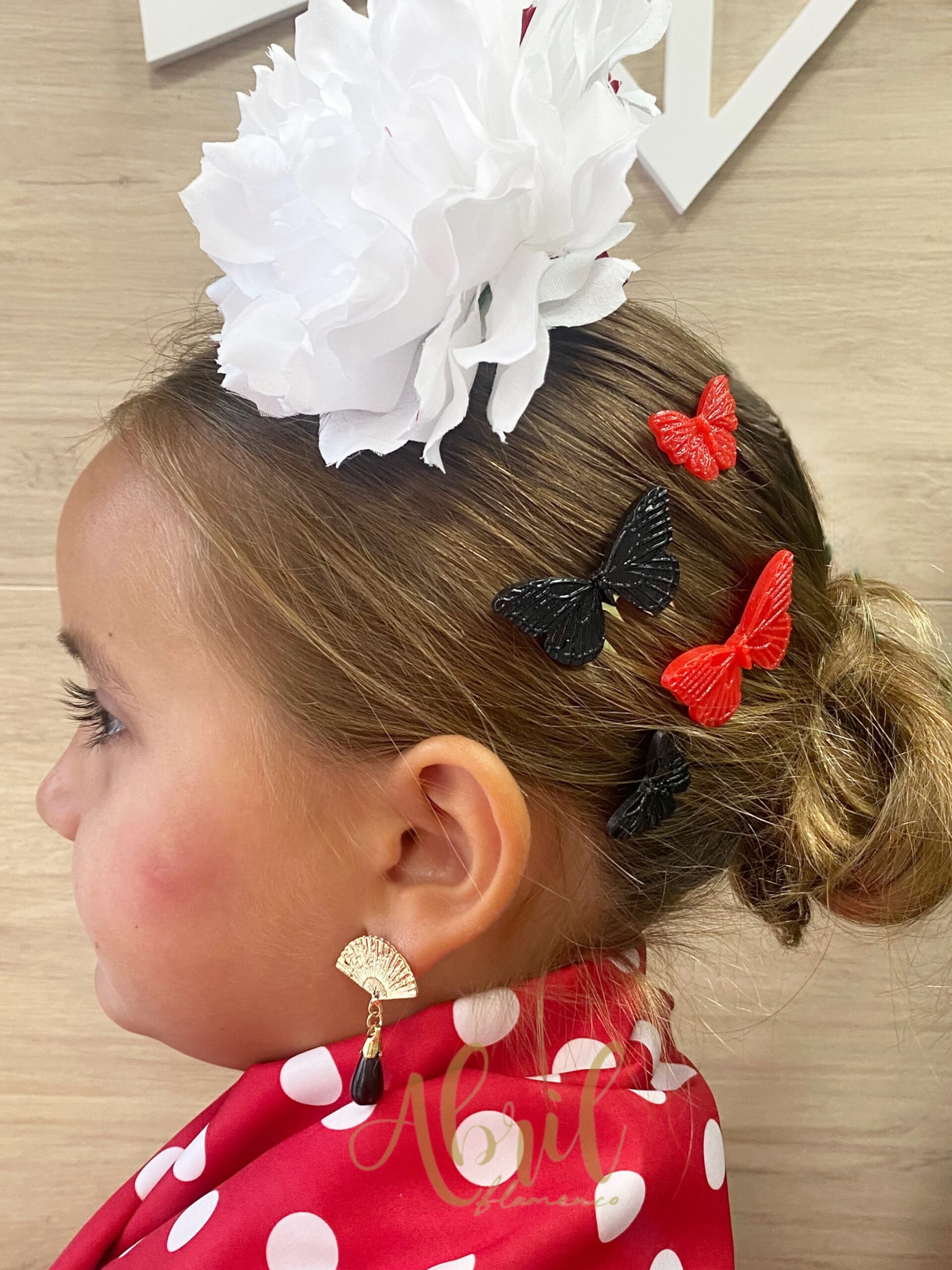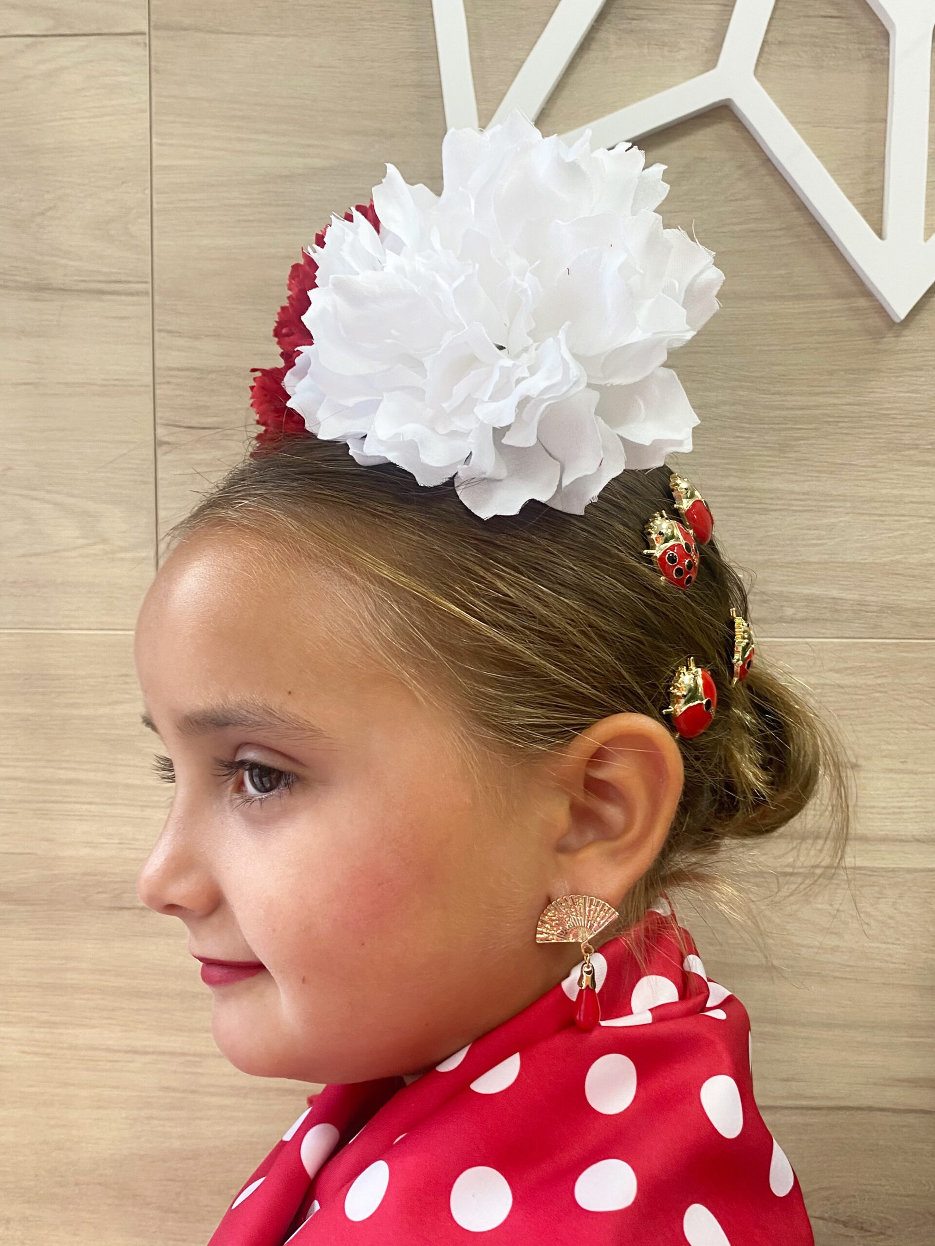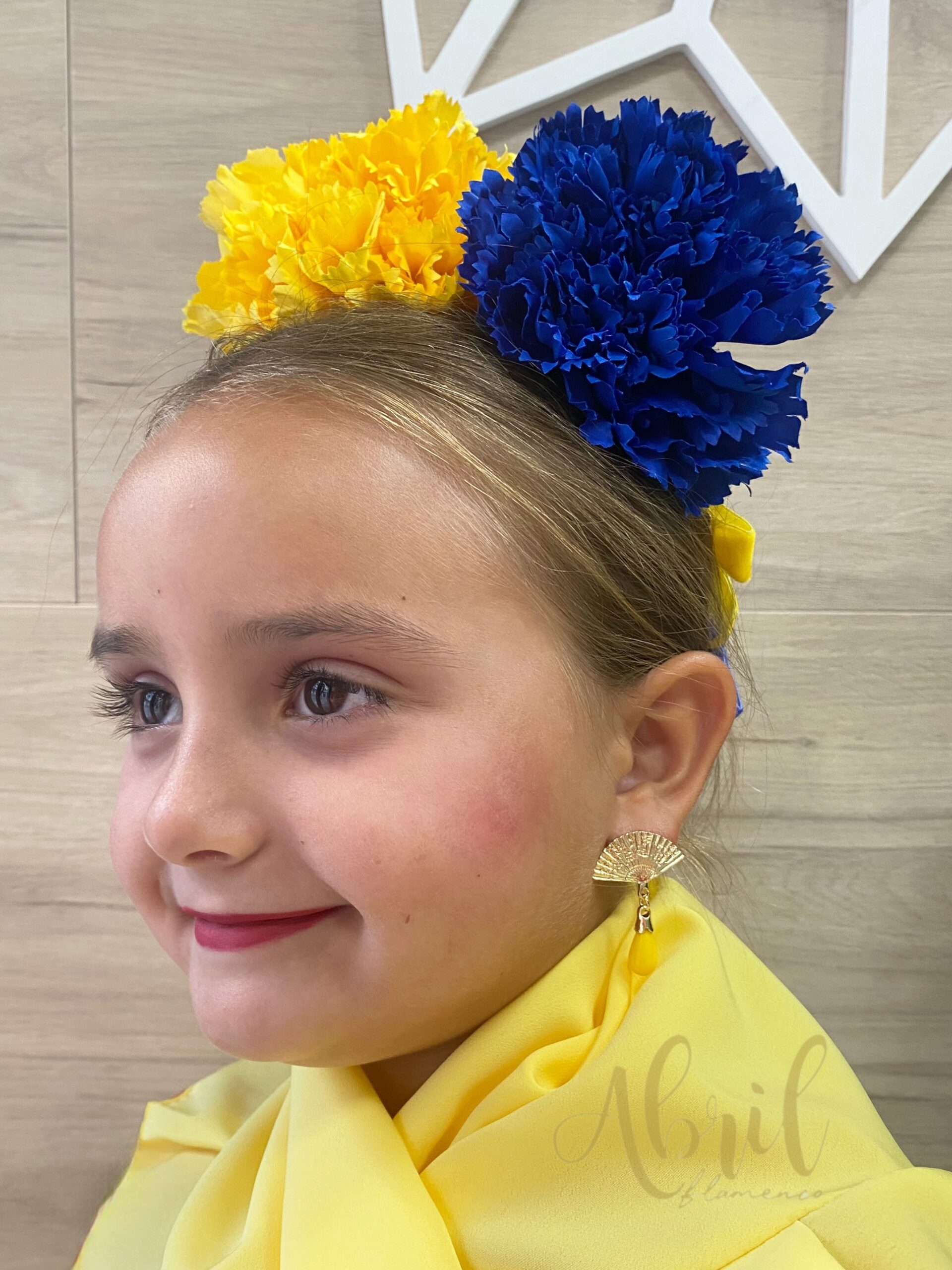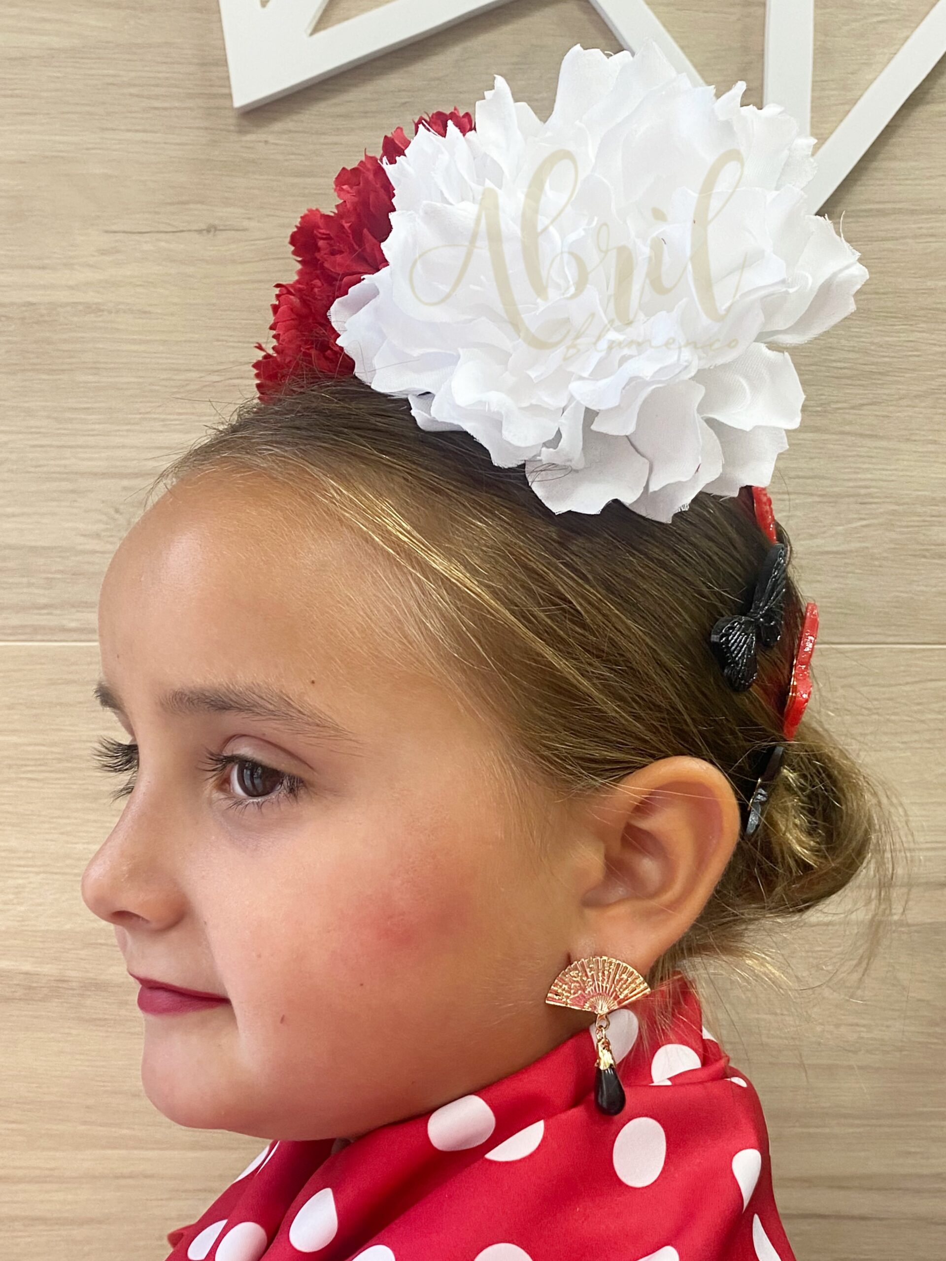 Pendientes infantiles de abanico dorado con pequeña lágrima en color.