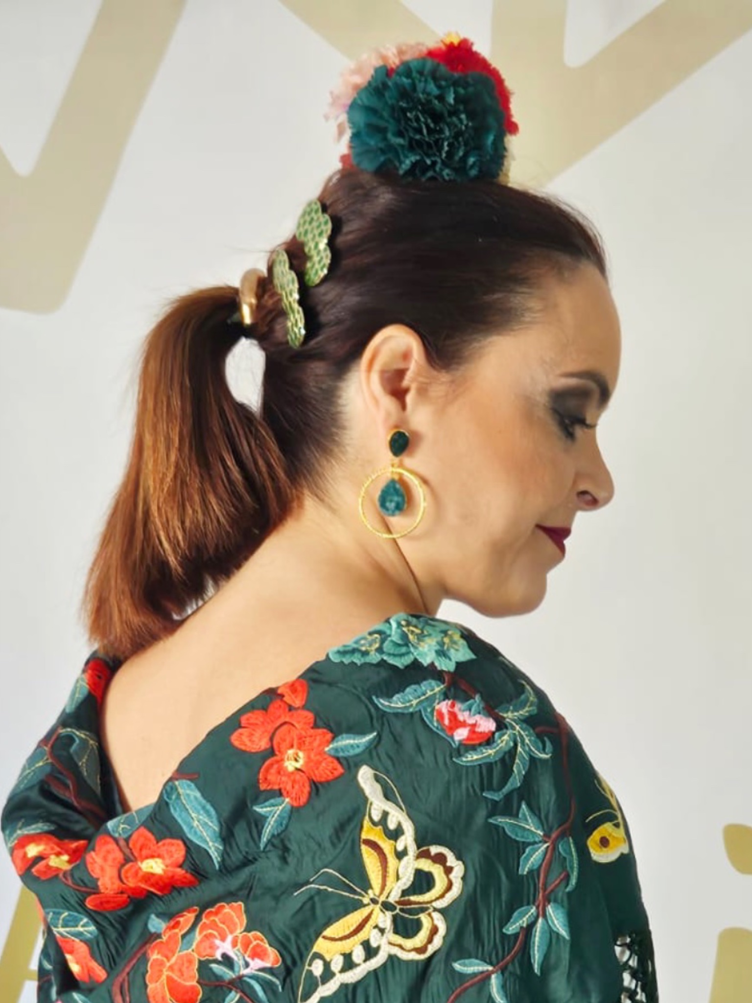 Pendientes aros con piedra perforada verde.