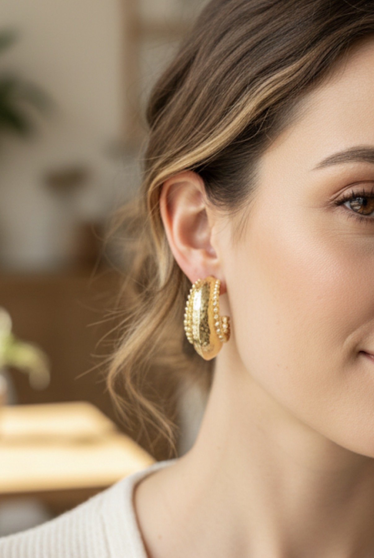 Pendientes aros con bolitas en los filos, cierre de tuerca y en golfi.