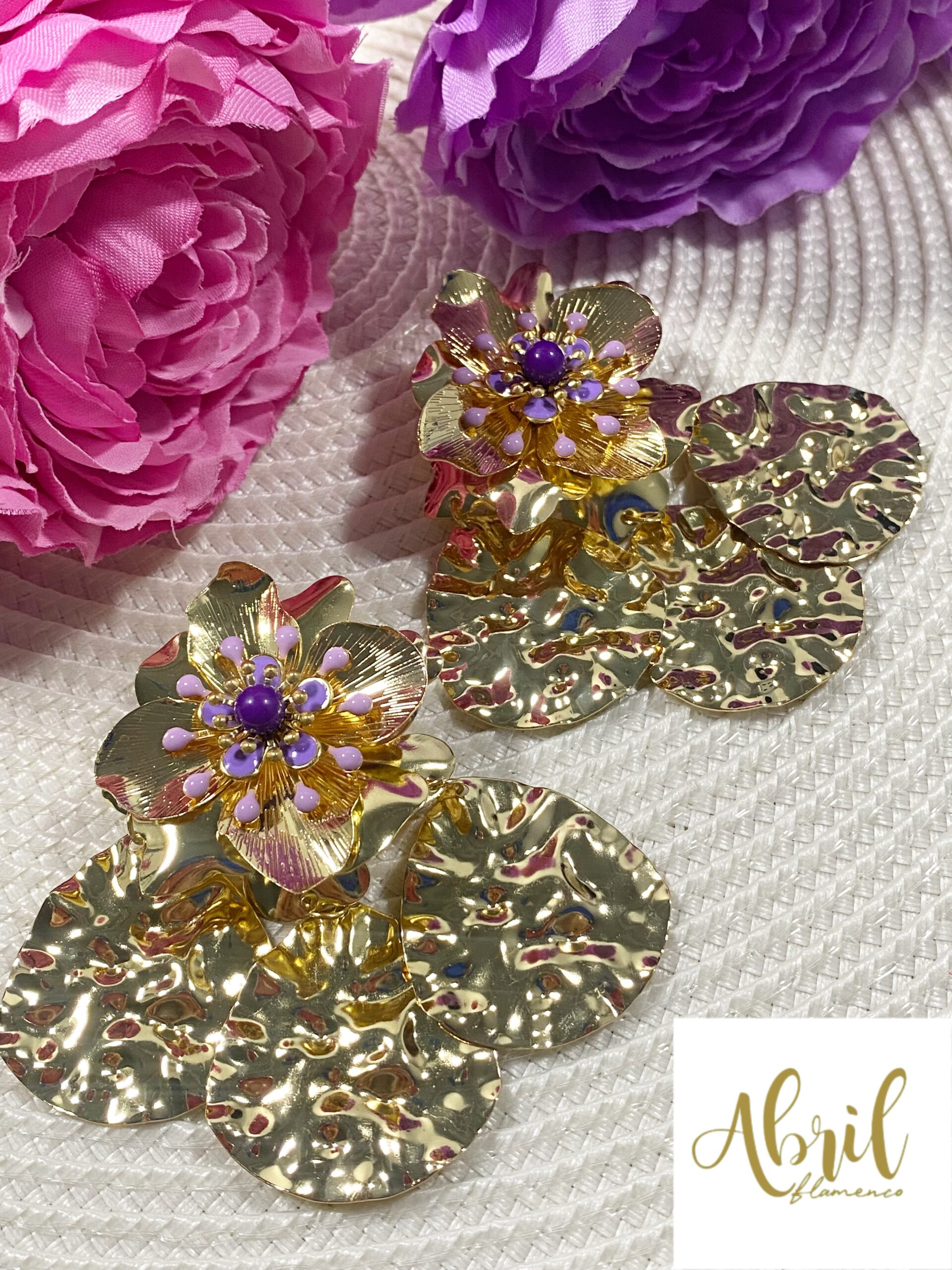 Sé el primero en valorar “Pendientes flor grande morado y malva”