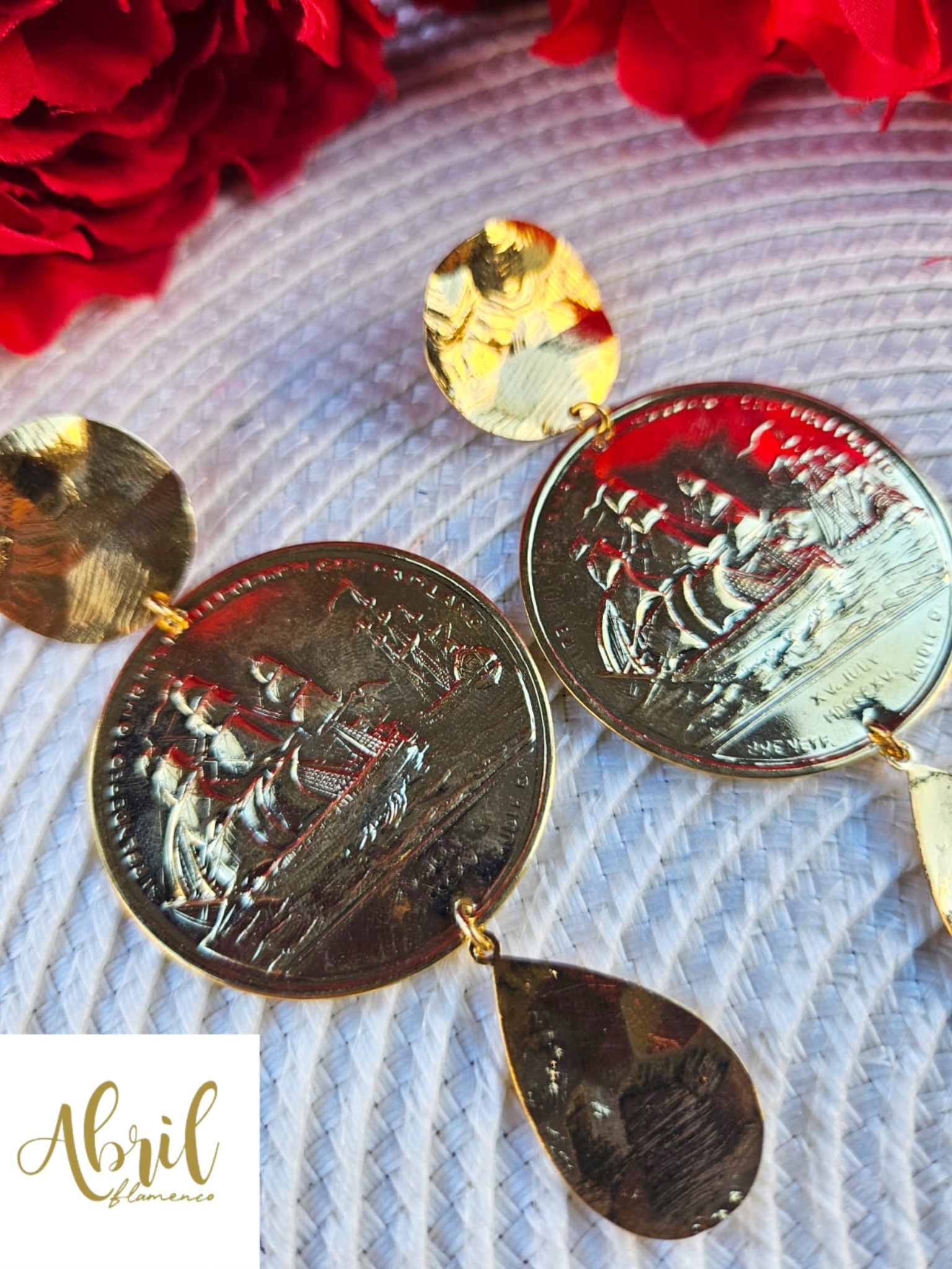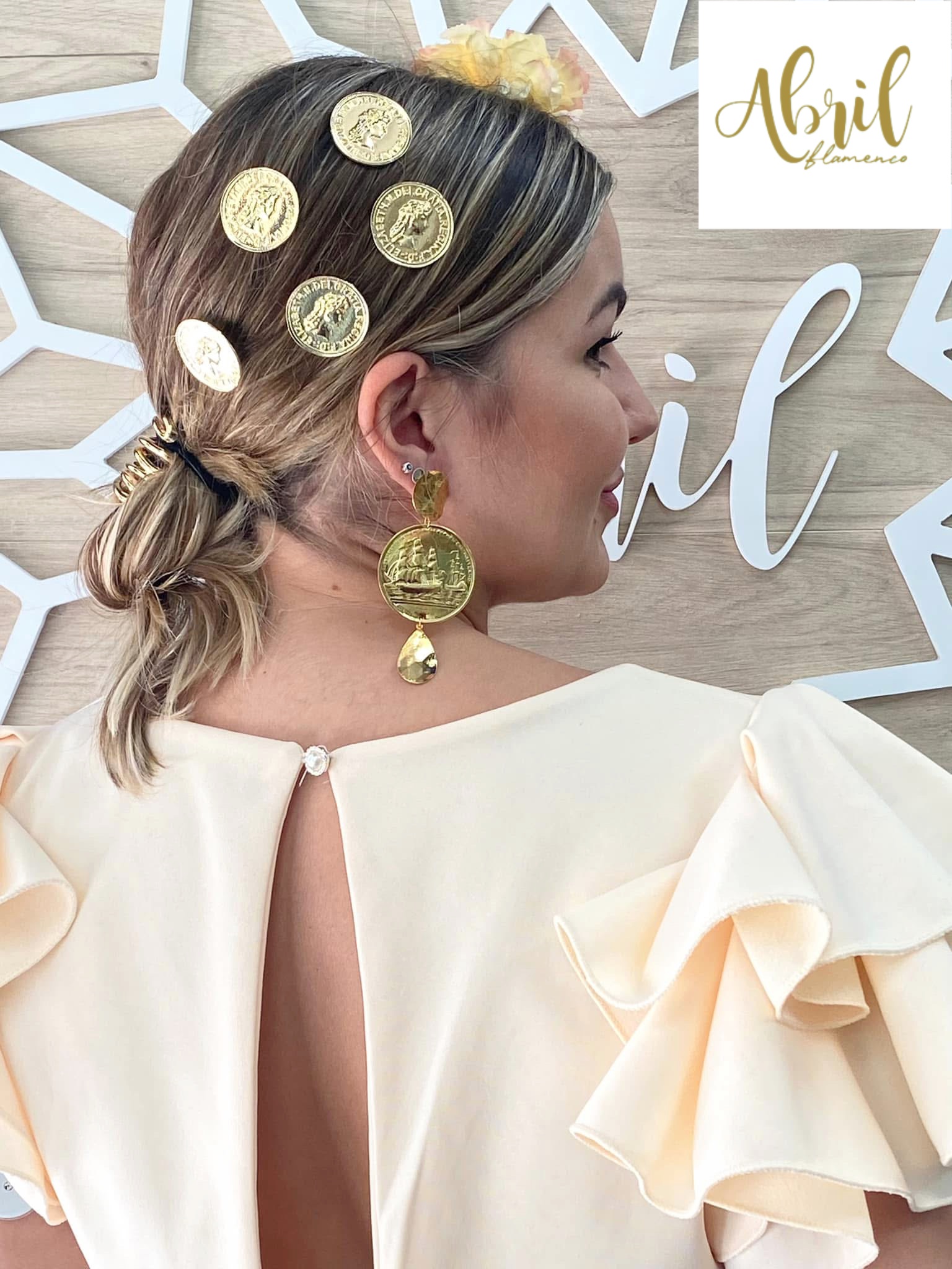 Pendientes largos moneda dorado.