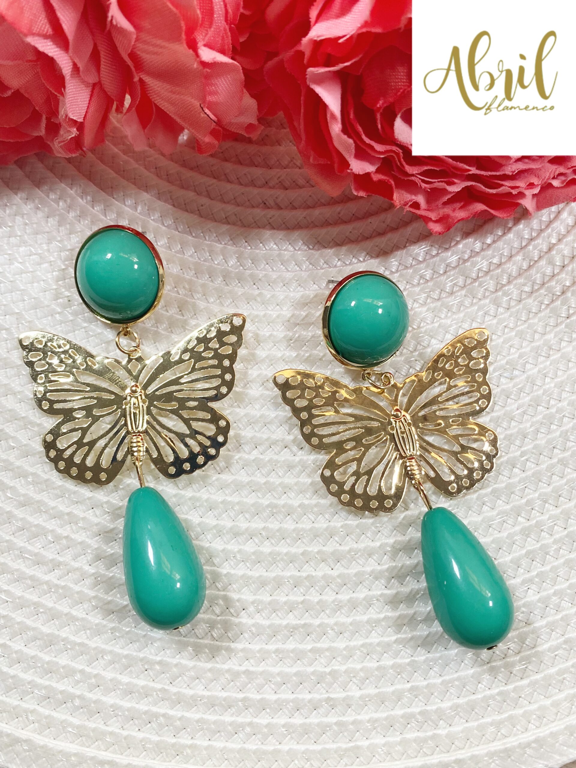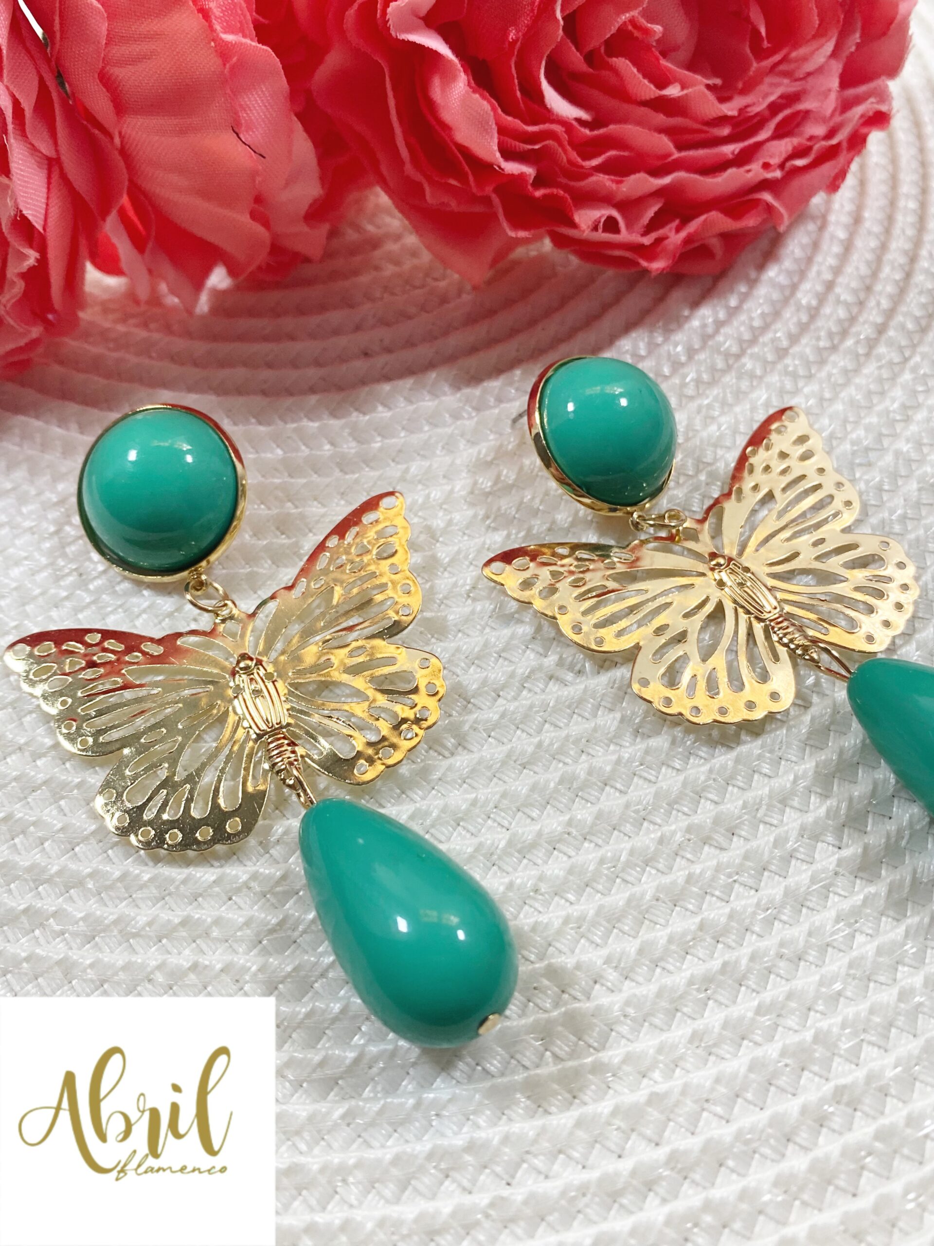 Sé el primero en valorar “Pendientes mariposa con lágrima verde agua”