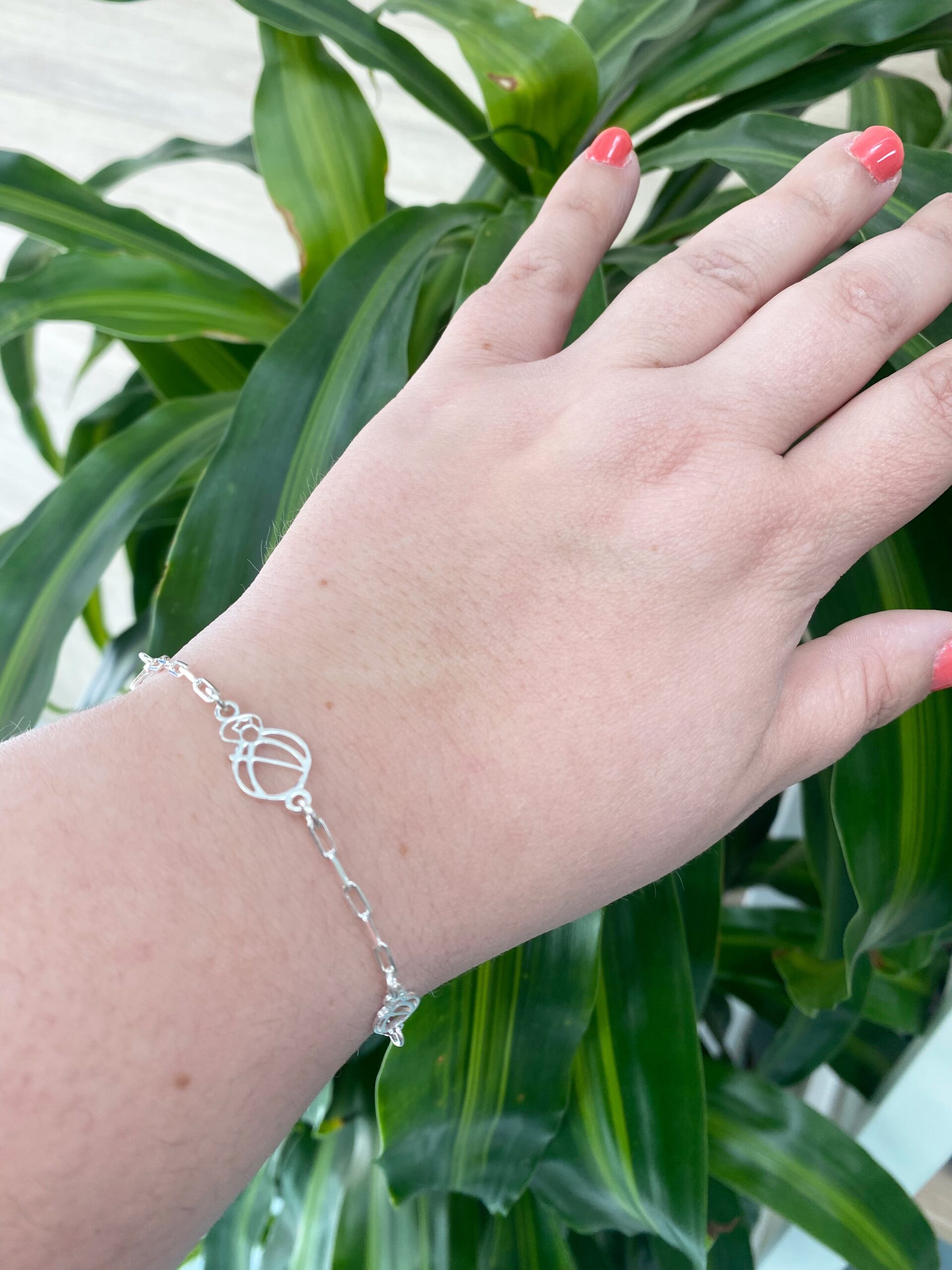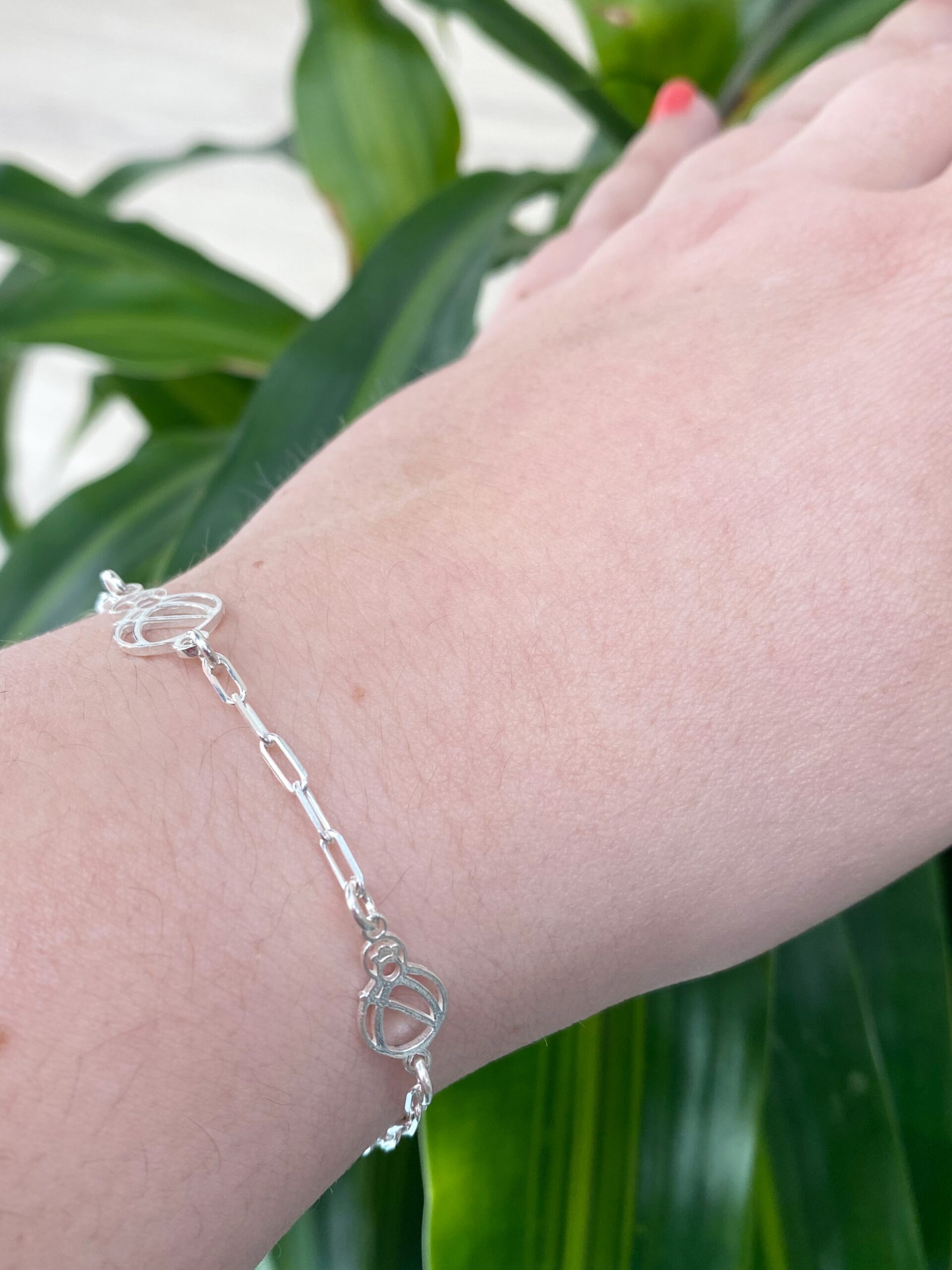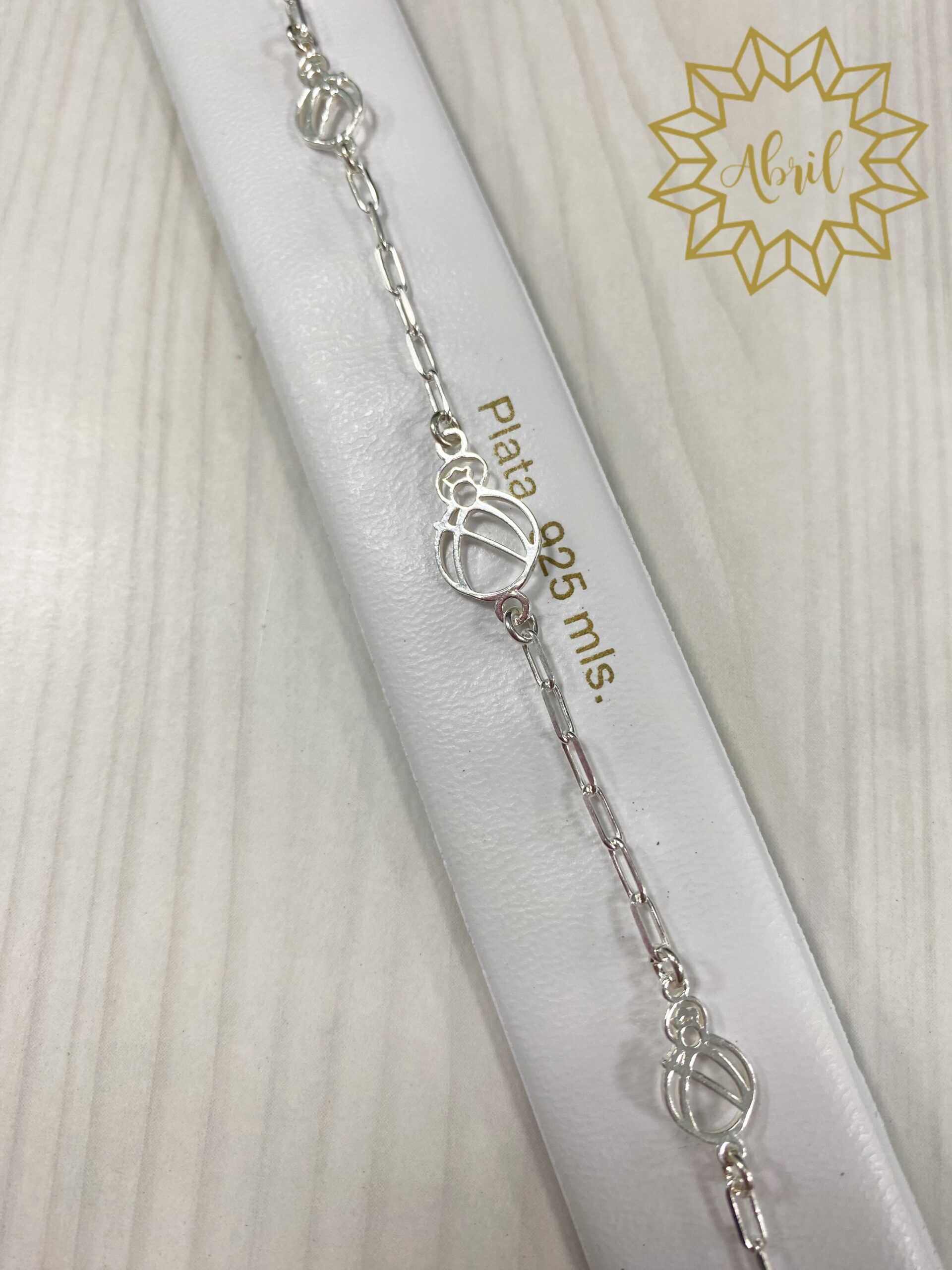 Pulsera en plata de ley de la virgen de la cabeza, tiene 3 siluetas de la virgen: la central más grande y la de los laterales más pequeña.