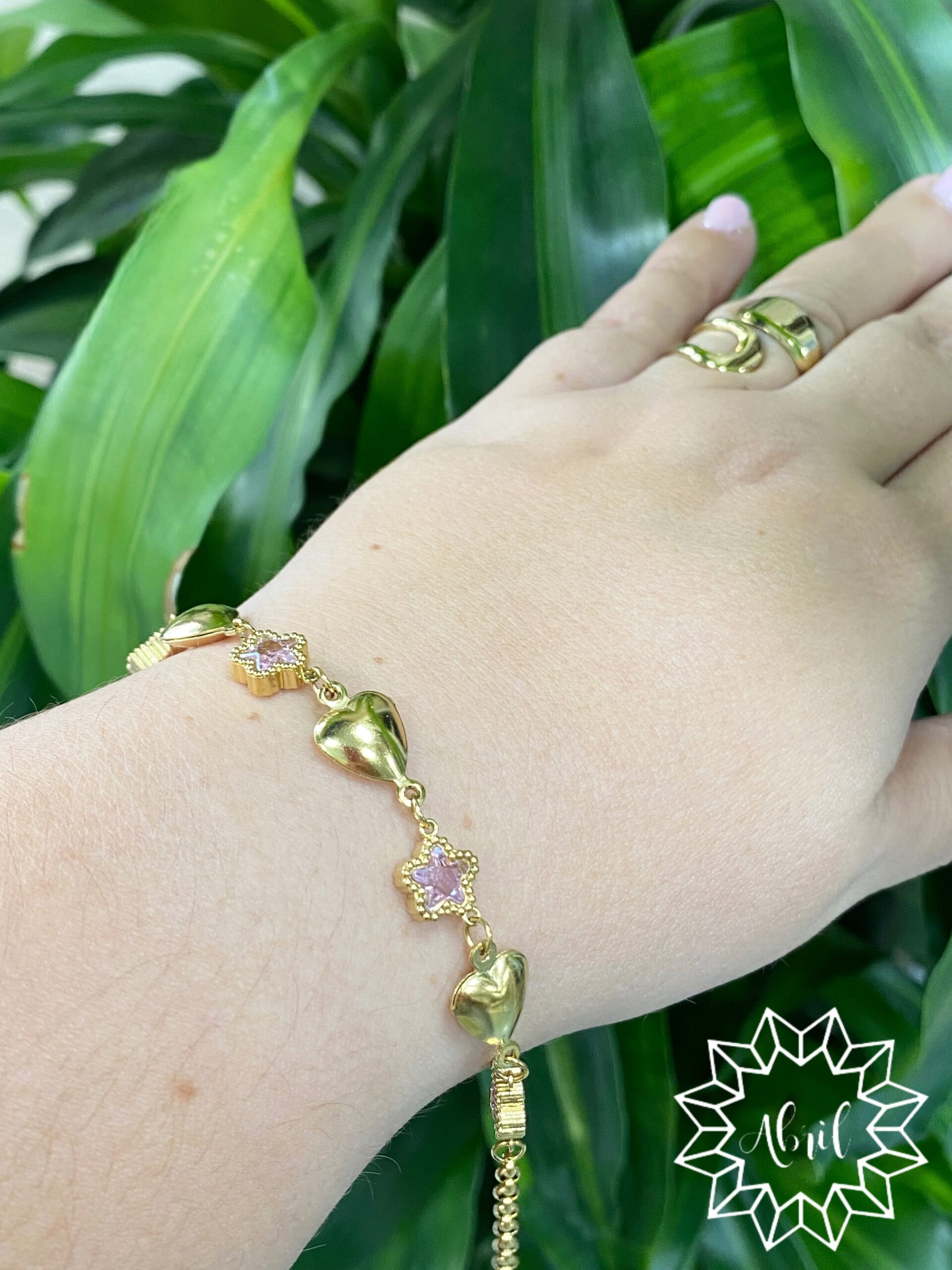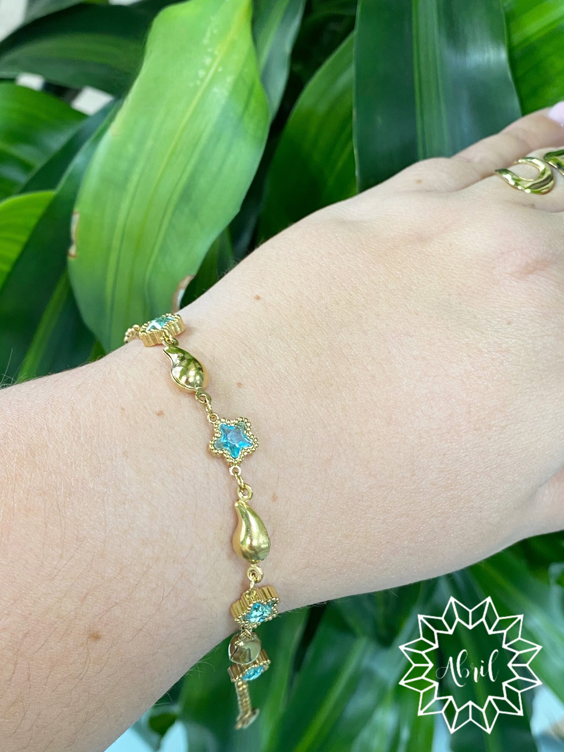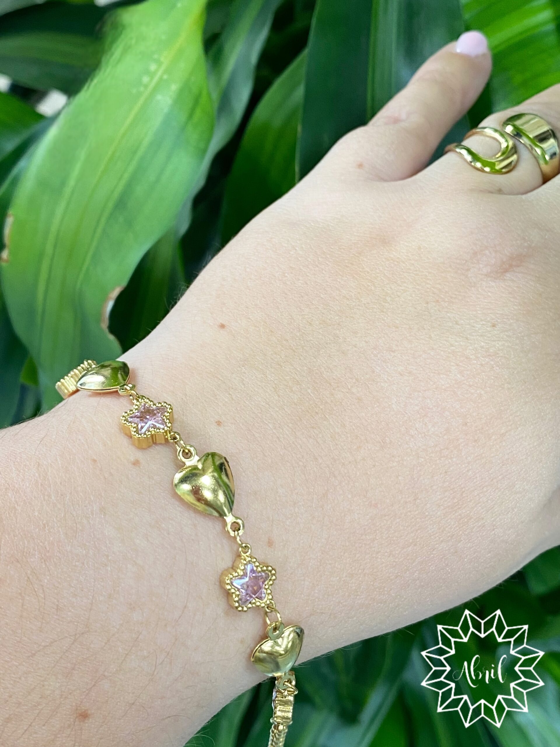 Pulsera en acero dorado, con estrellitas en Cristal de colores.