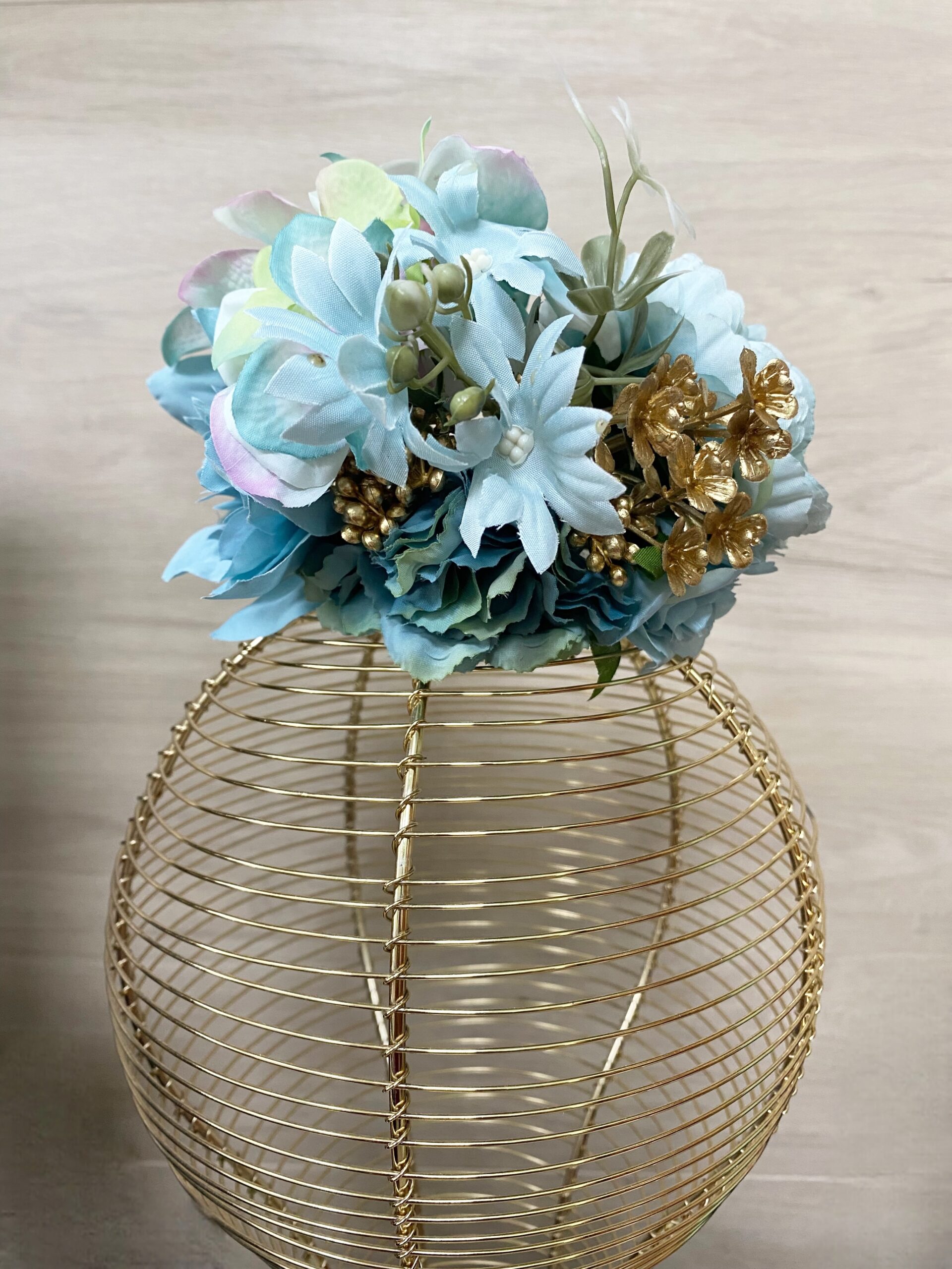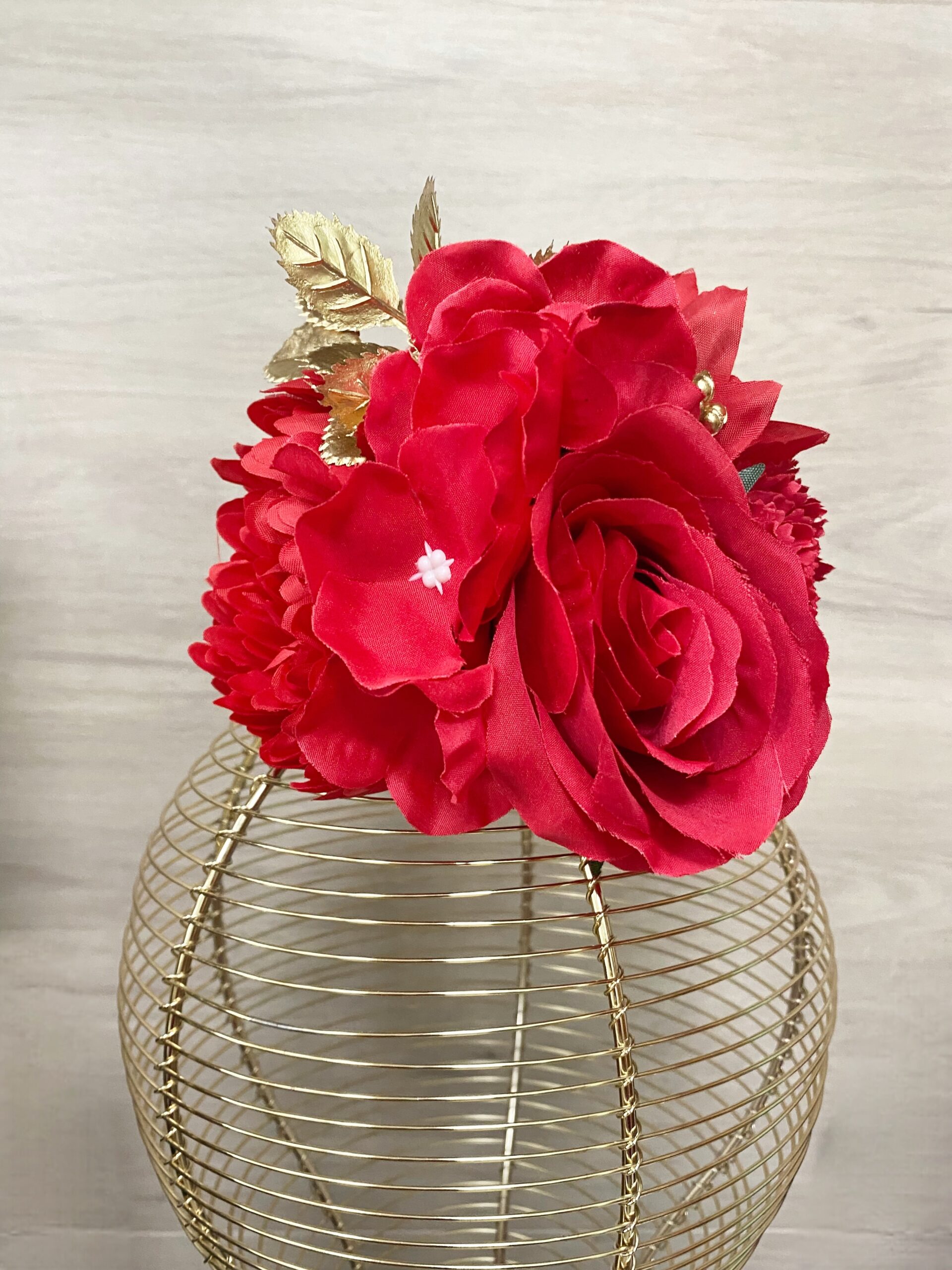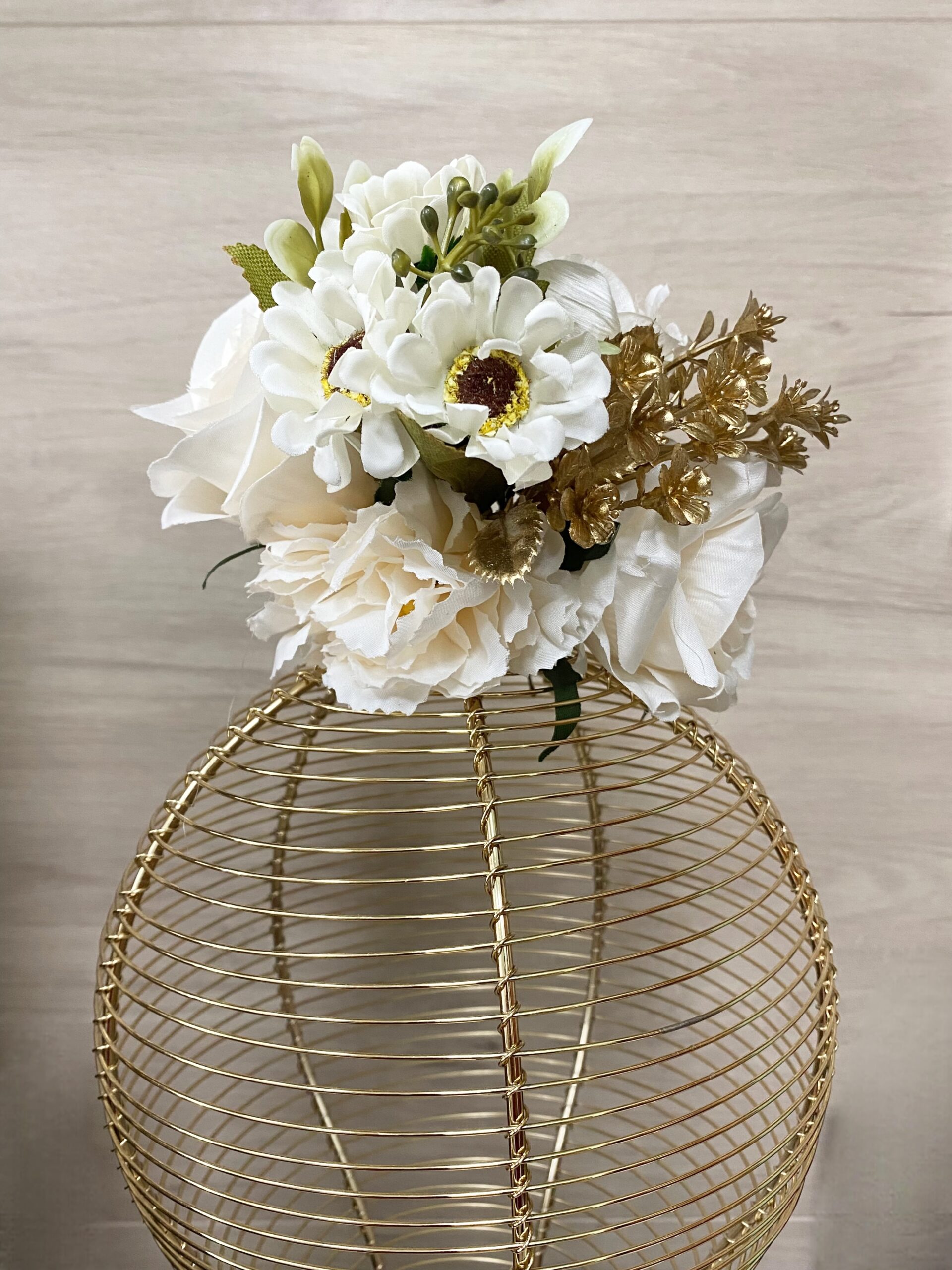 Ramillete variado en flores y detalles en dorado, ideal para caminos y romerías.
