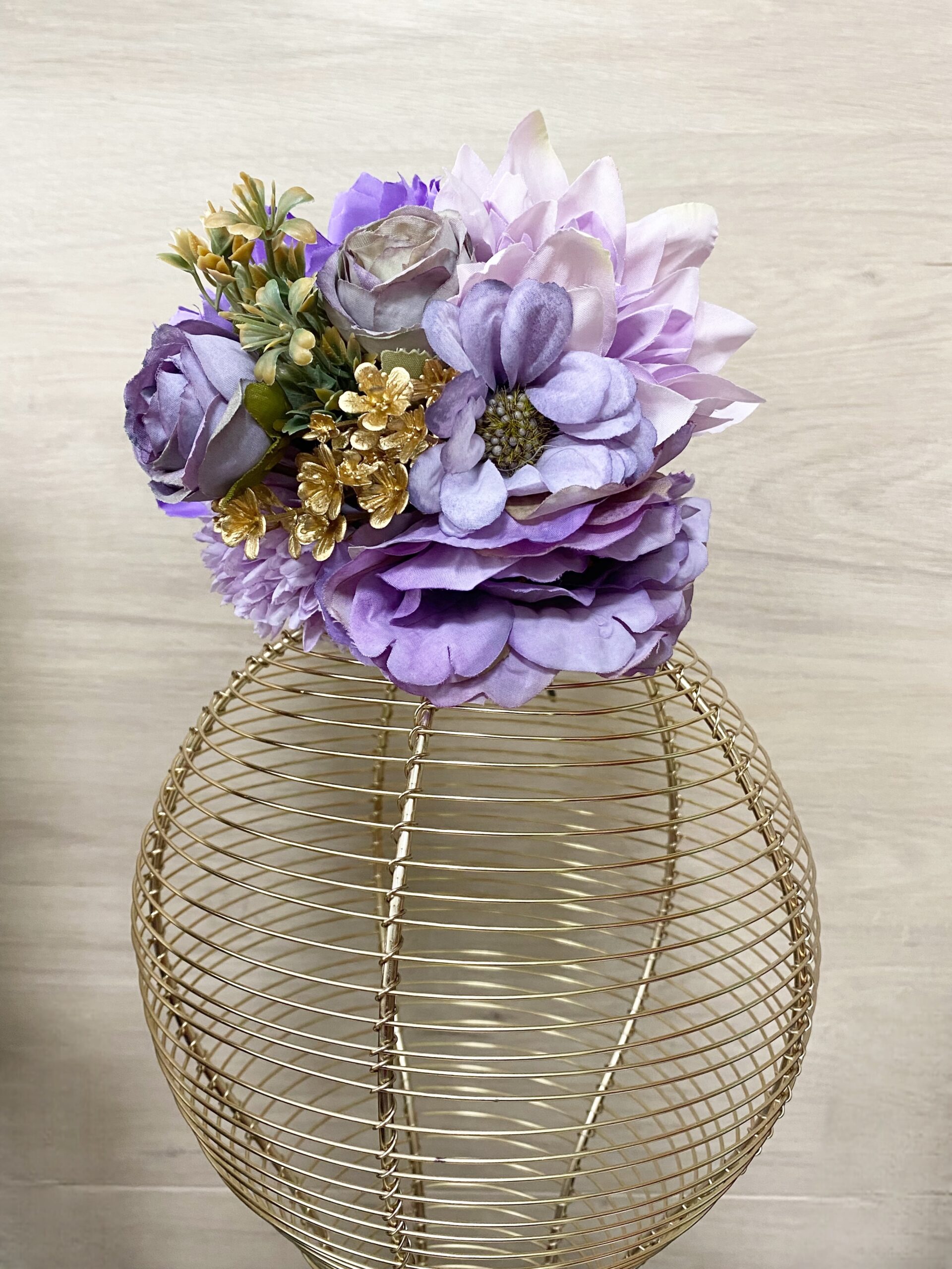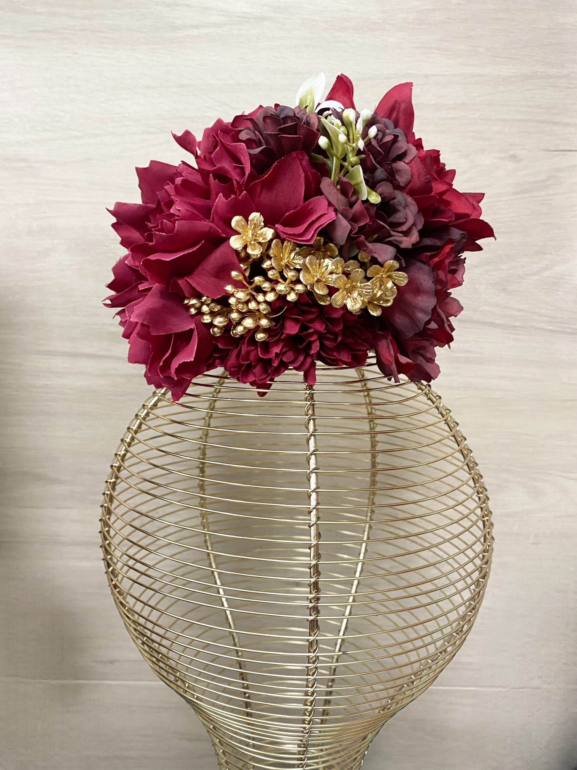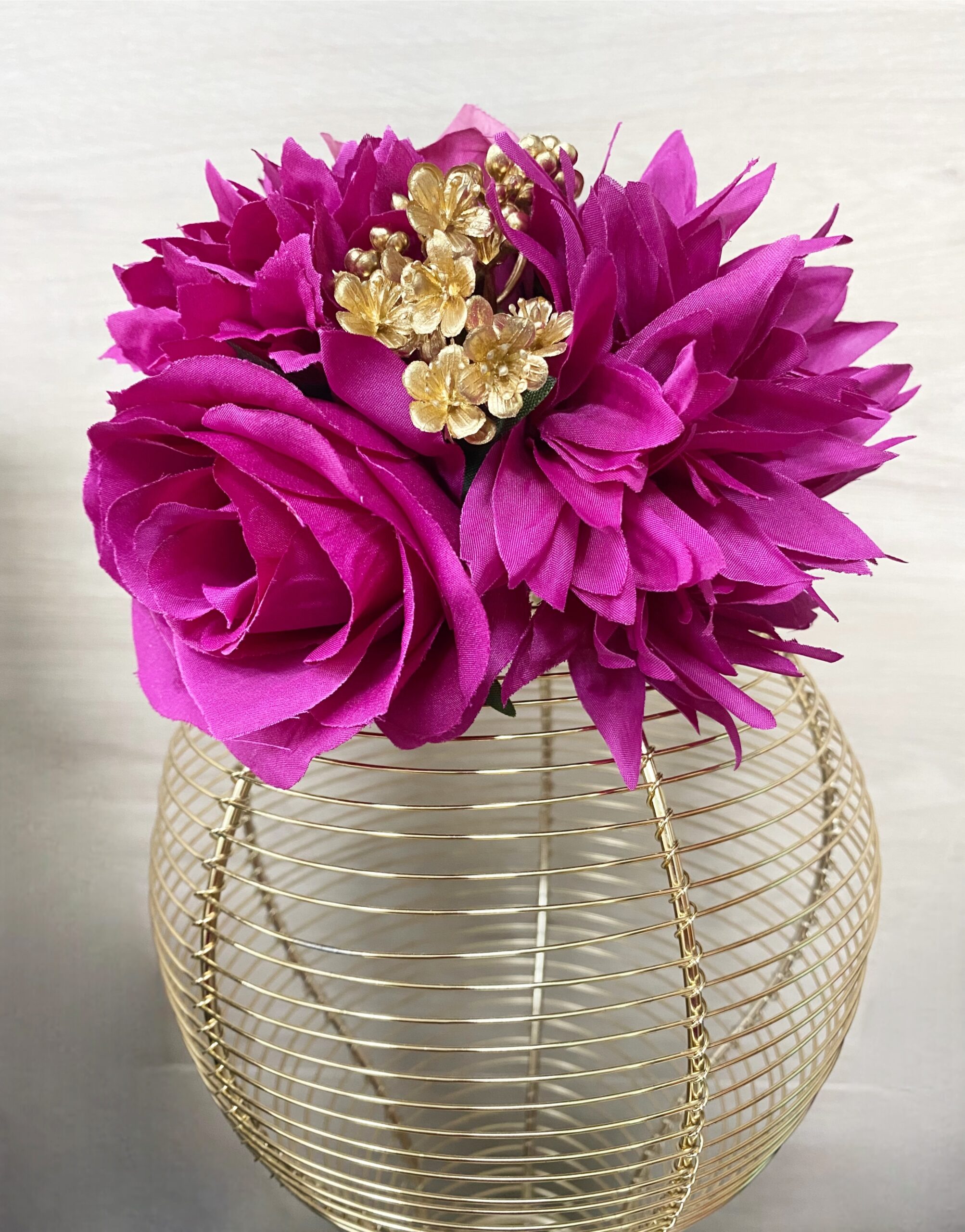 Ramillete variado en flores y detalles en dorado, ideal para caminos y romerías.