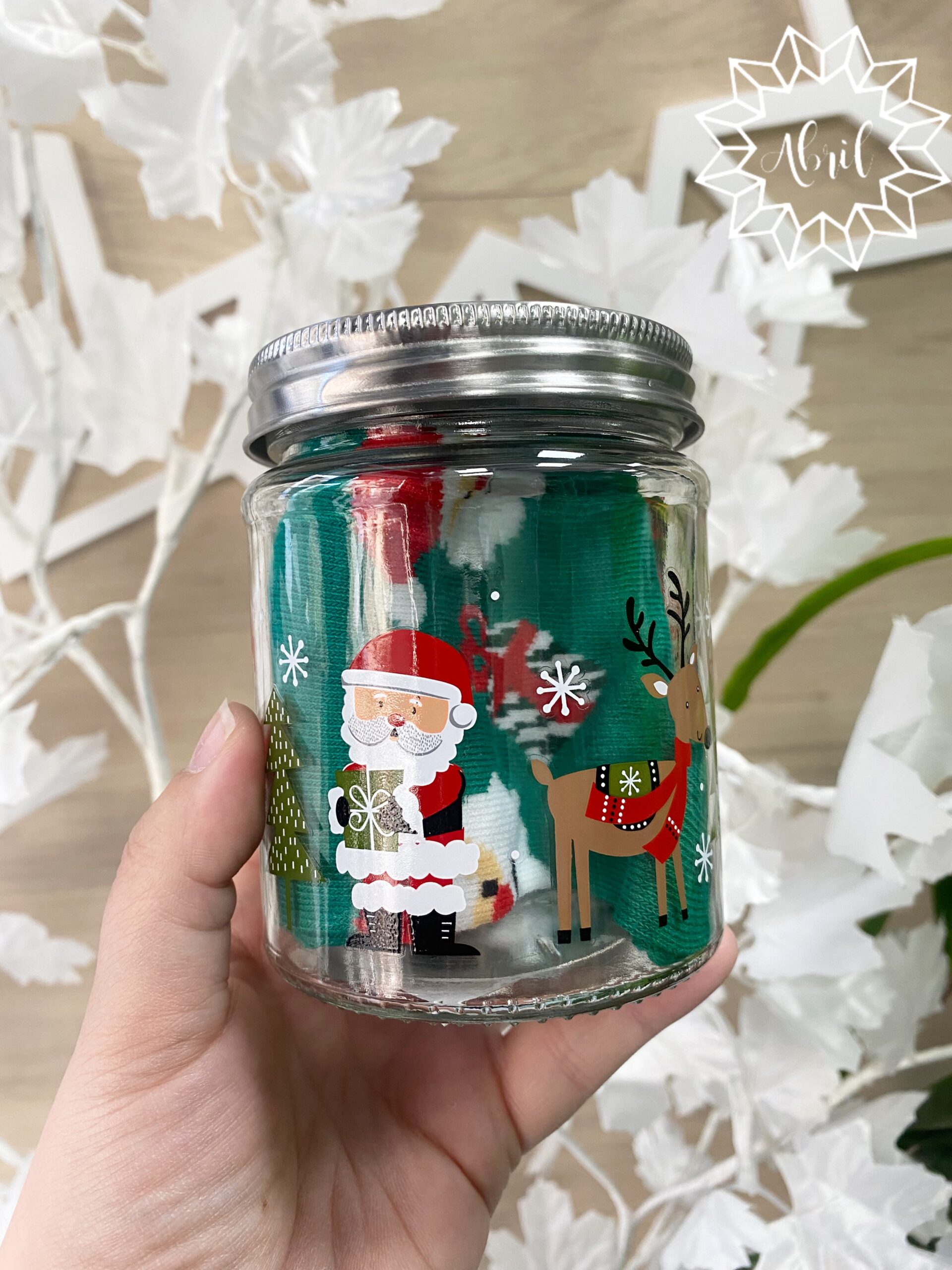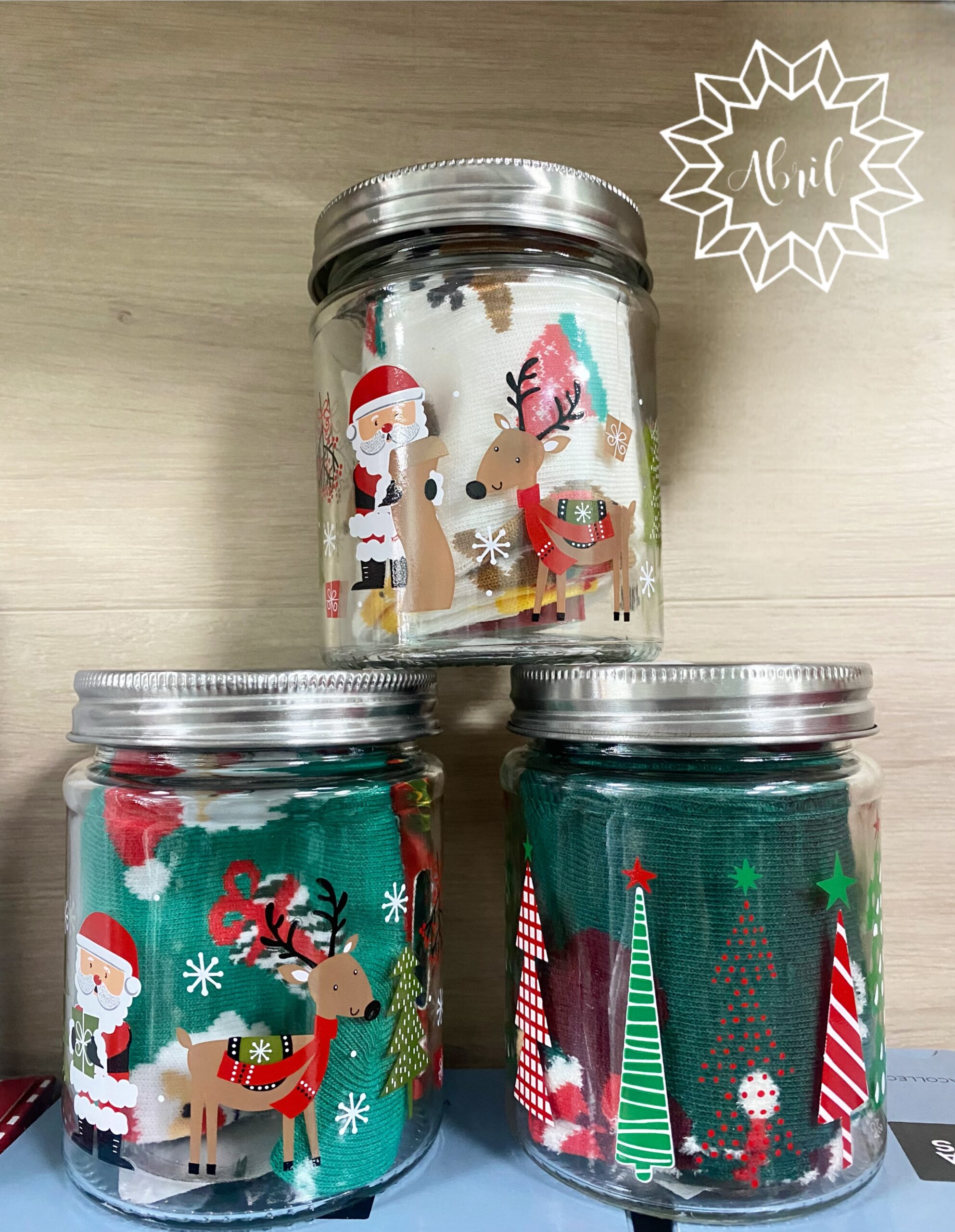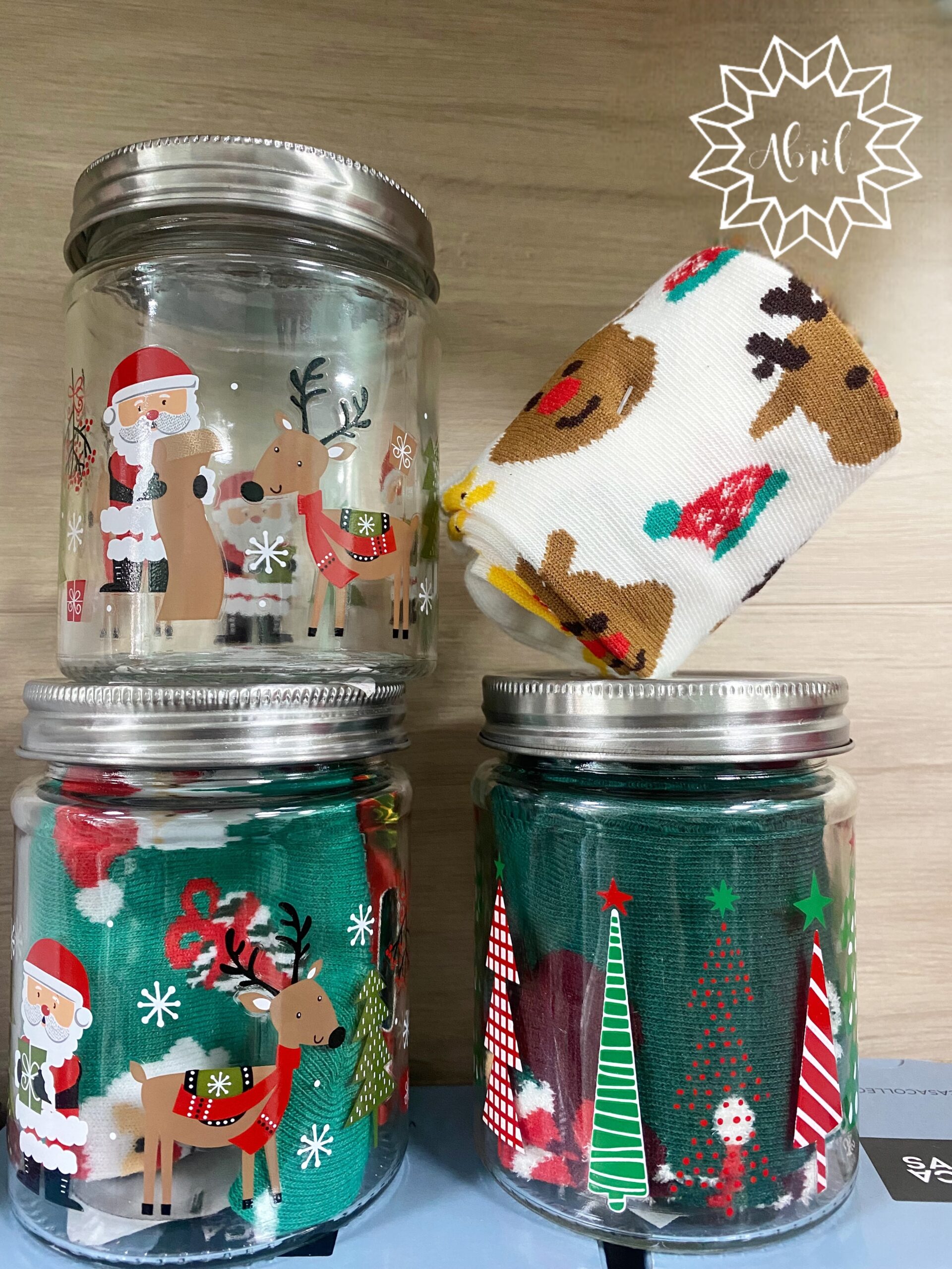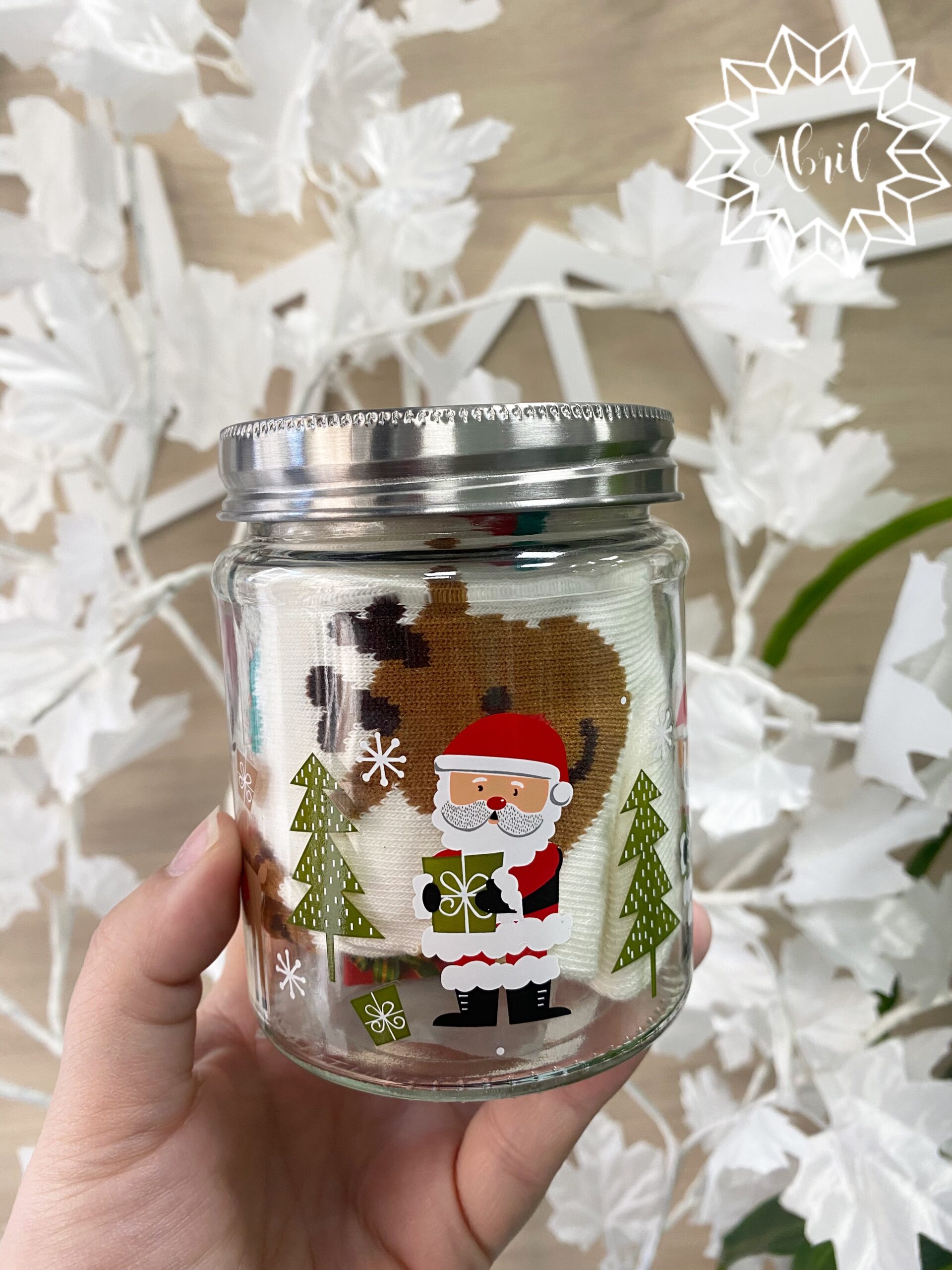 Tarro cristal con motivos navideños y calcetín navideño (talla única hasta el 42).