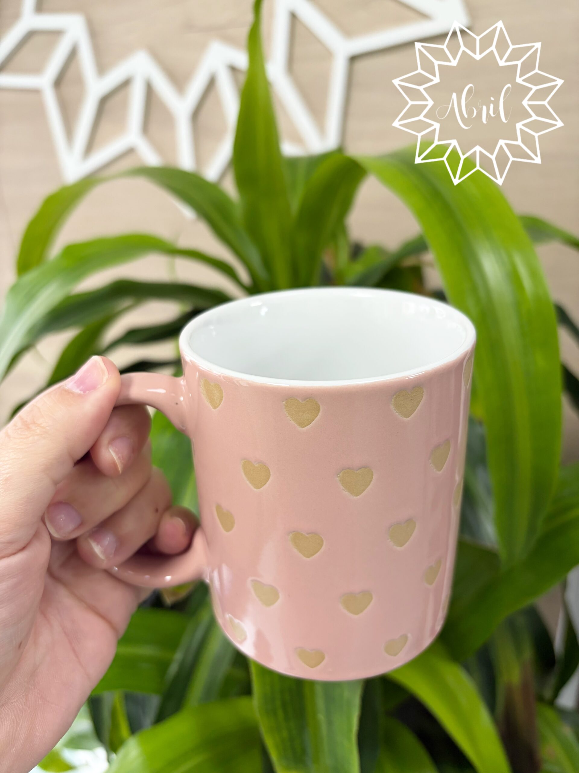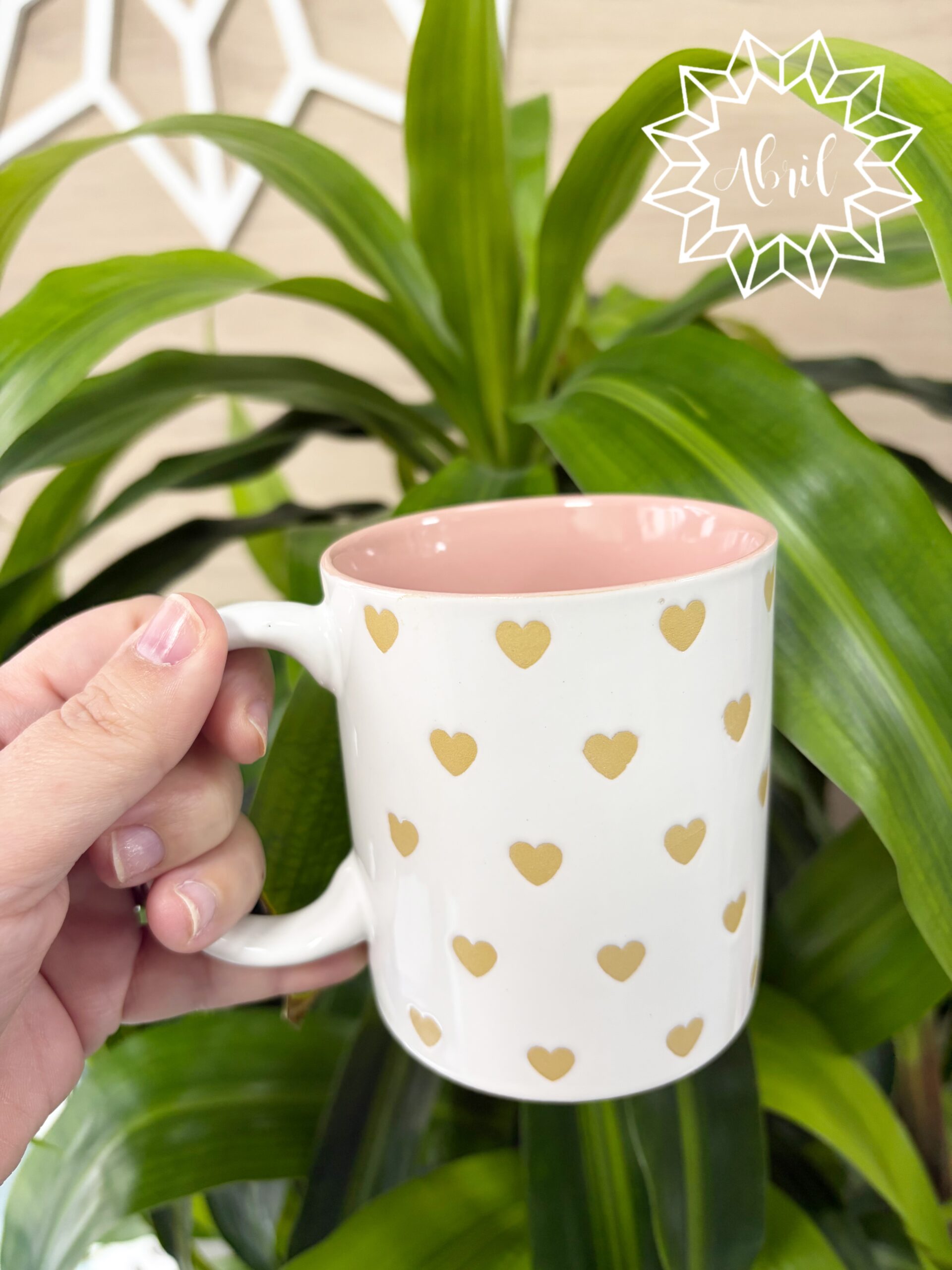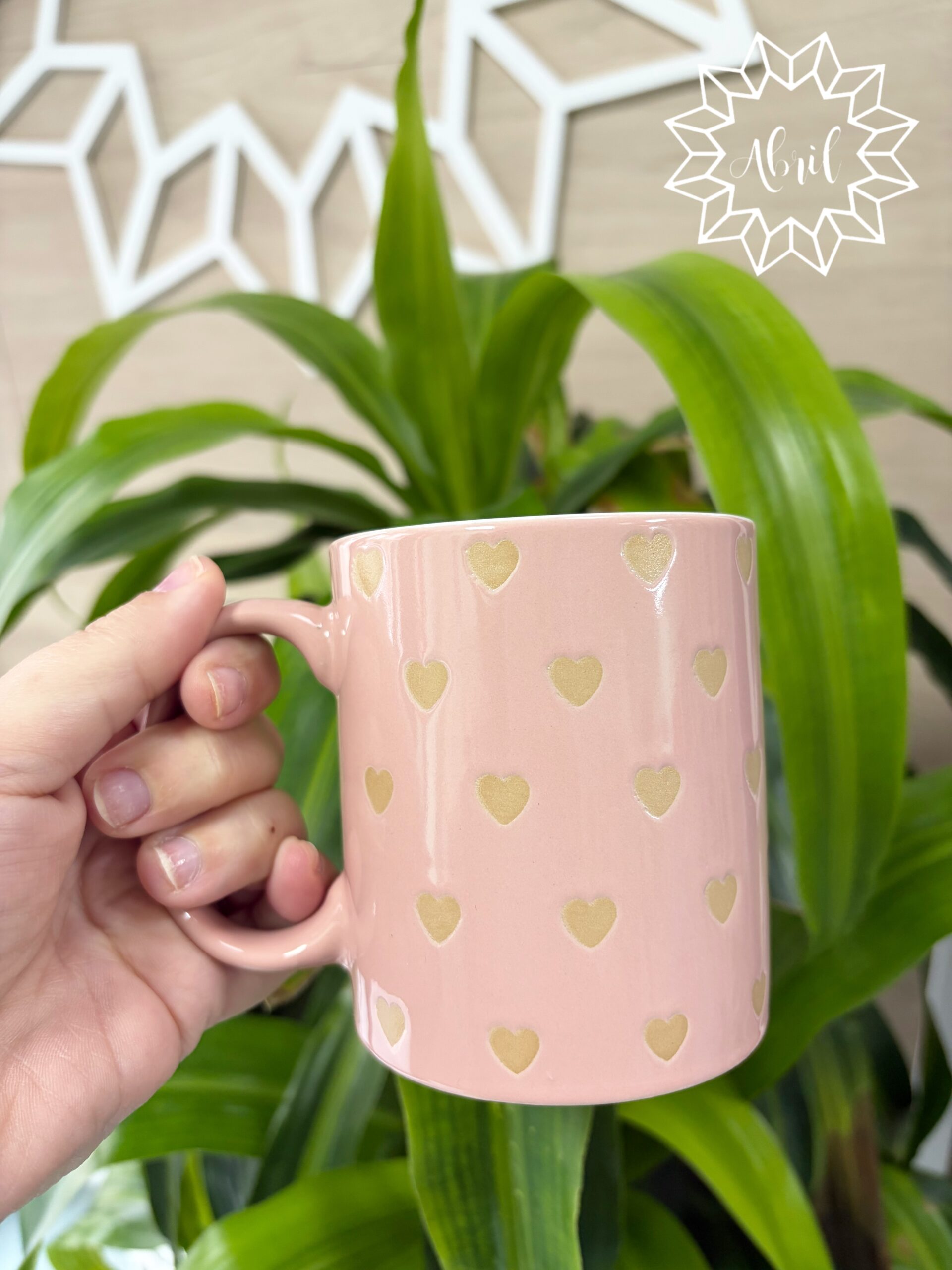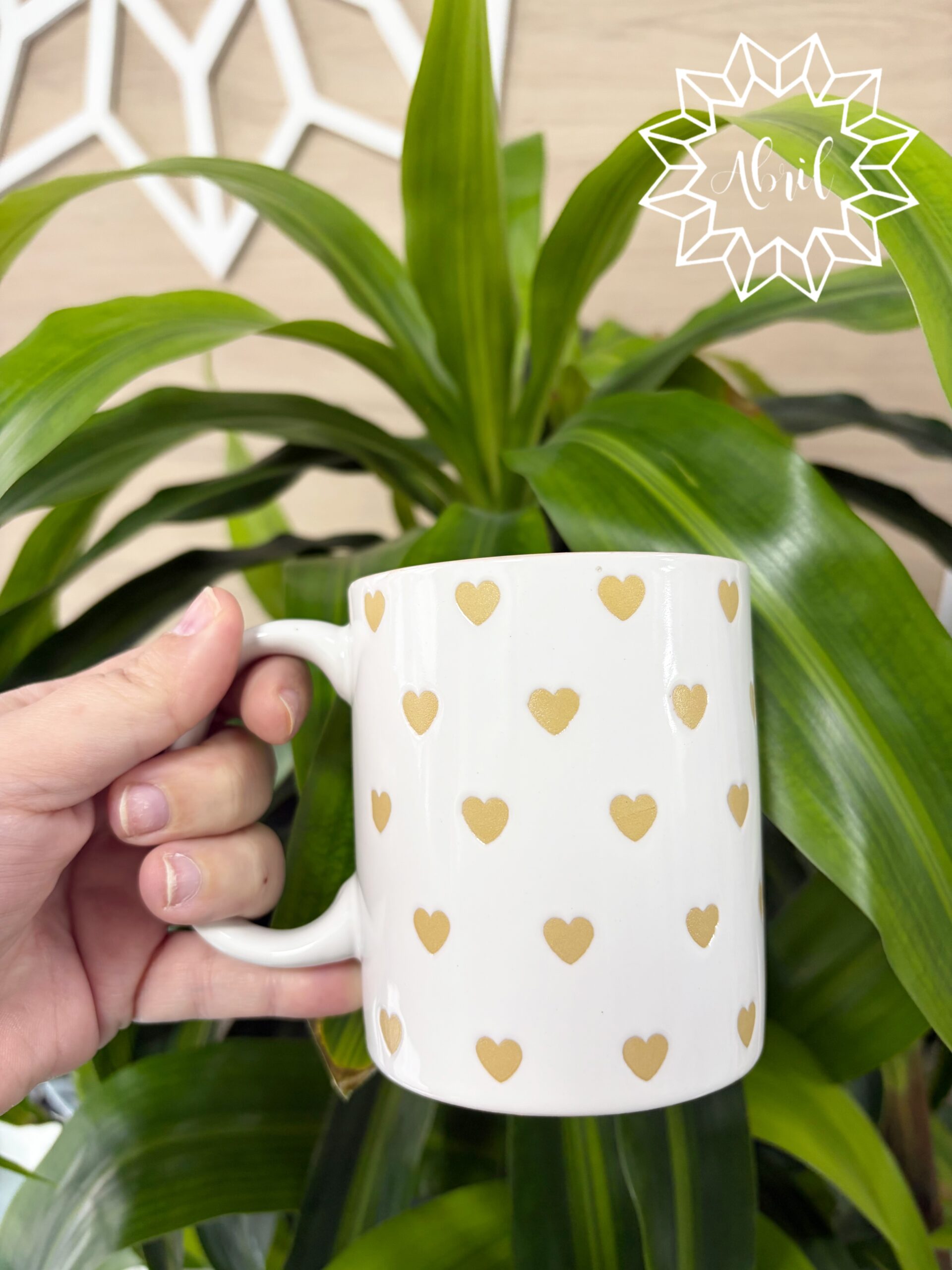 Taza de corazones dorados.
